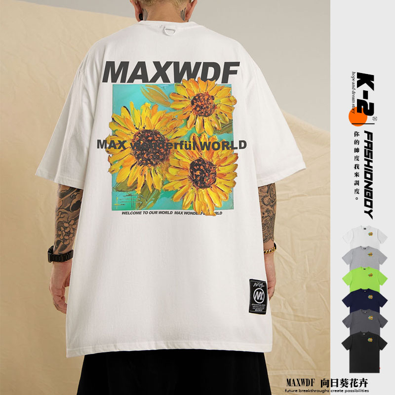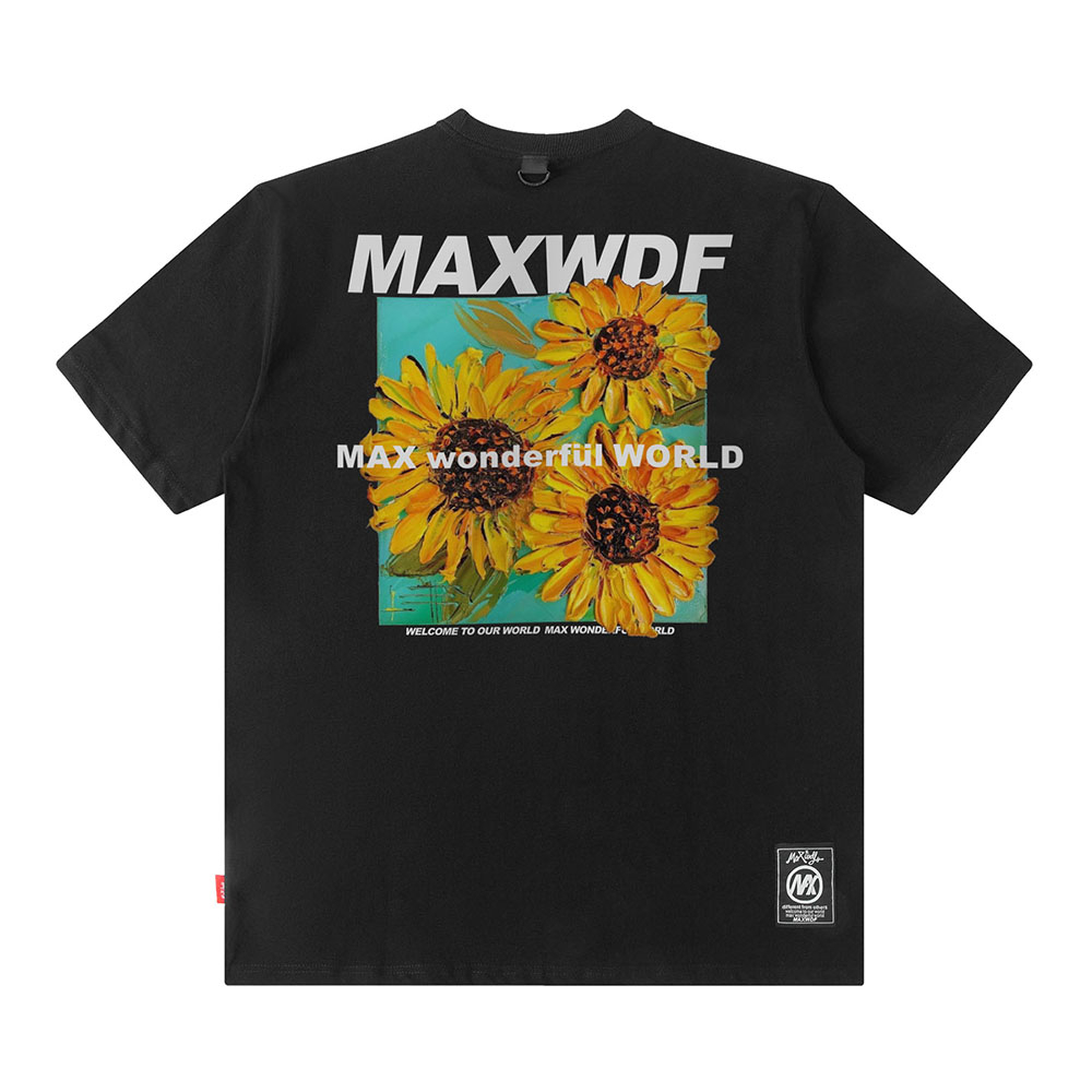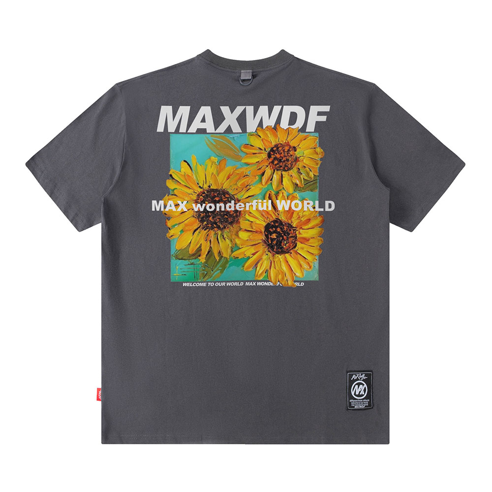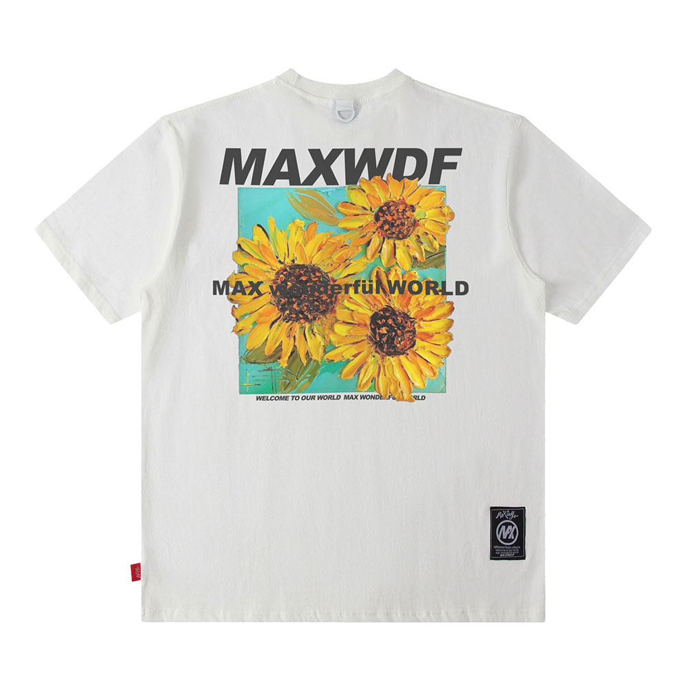 【K-2】MAXWDF 向日葵 花卉 花朵 太陽花 短袖上衣 個性短T 五分袖 男女不拘【AB1516A】