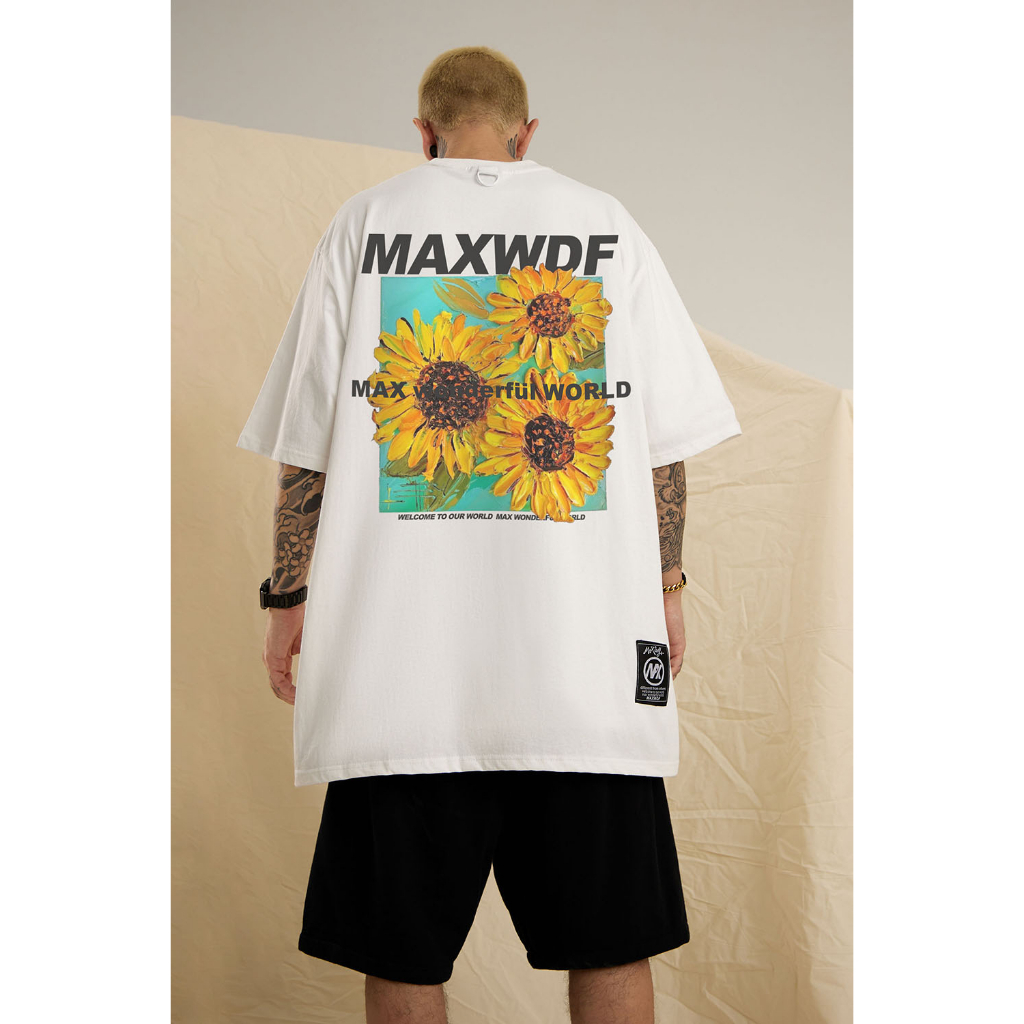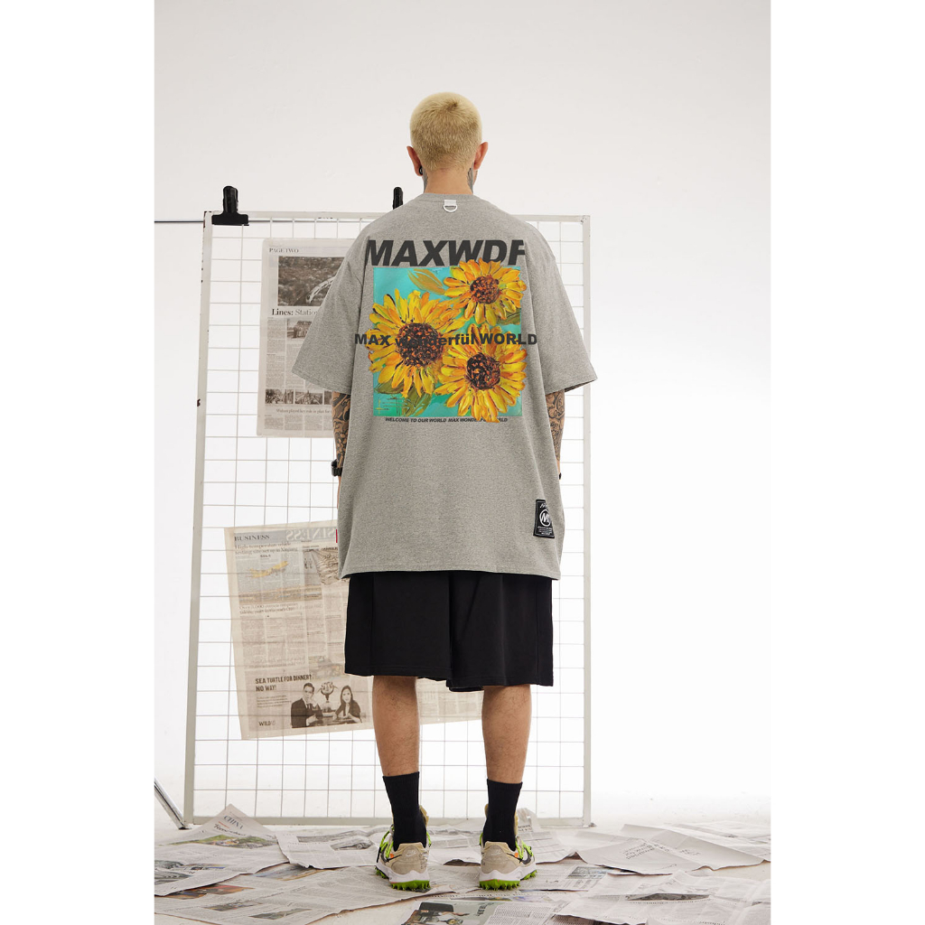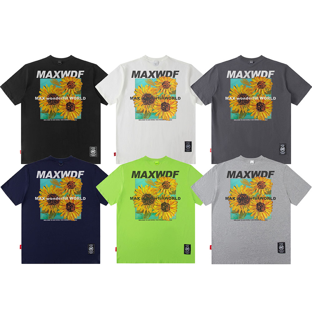 【K-2】MAXWDF 向日葵 花卉 花朵 太陽花 短袖上衣 個性短T 五分袖 男女不拘【AB1516A】