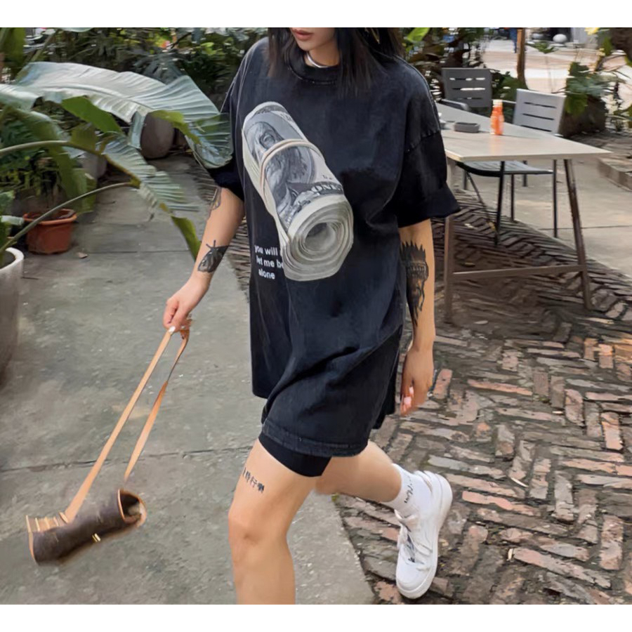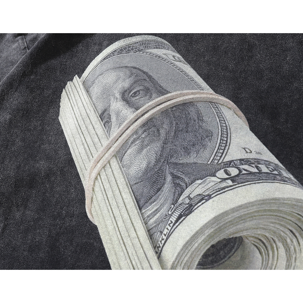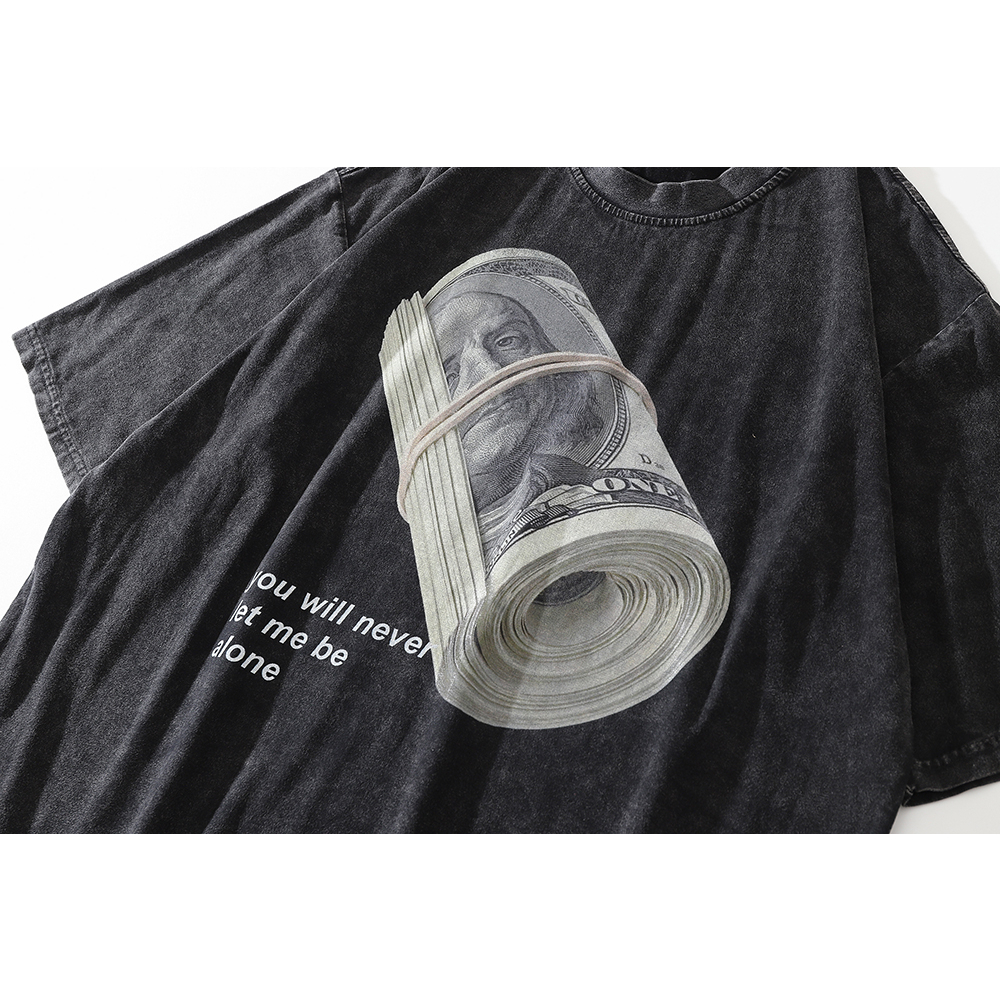【K-2】鈔票 美金 捲起 水洗短袖上衣 個性短T 錢 五分袖 男女不拘 TRAP 穿搭 2023【A716】