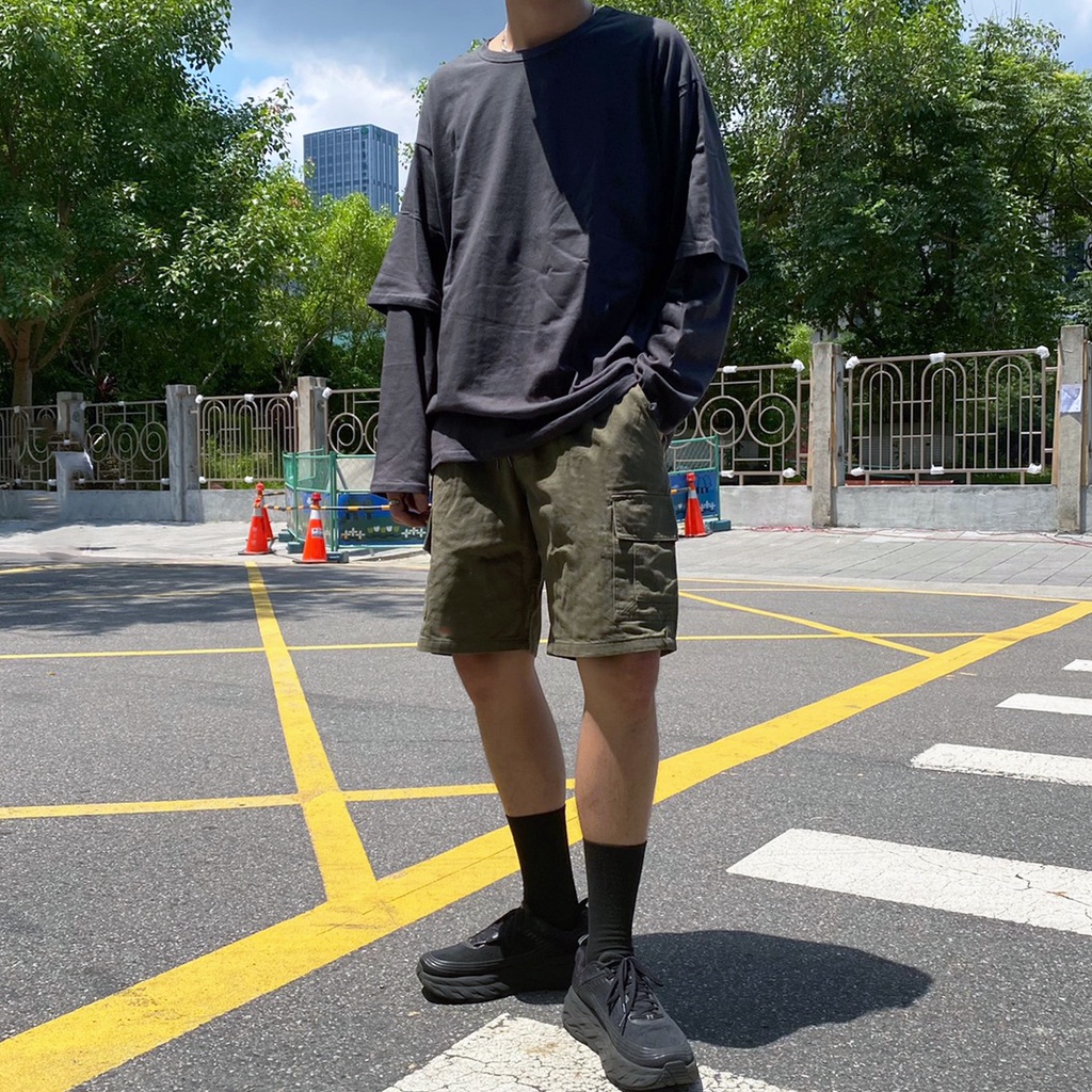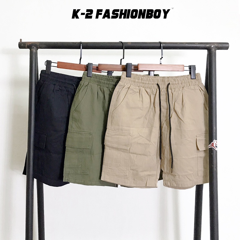 【K-2】工作短褲 文樂 六口袋 工裝 鬆緊抽繩 短褲 休閒短褲 斜紋布 硬挺 男女不拘 街頭短褲 K2【K88099】