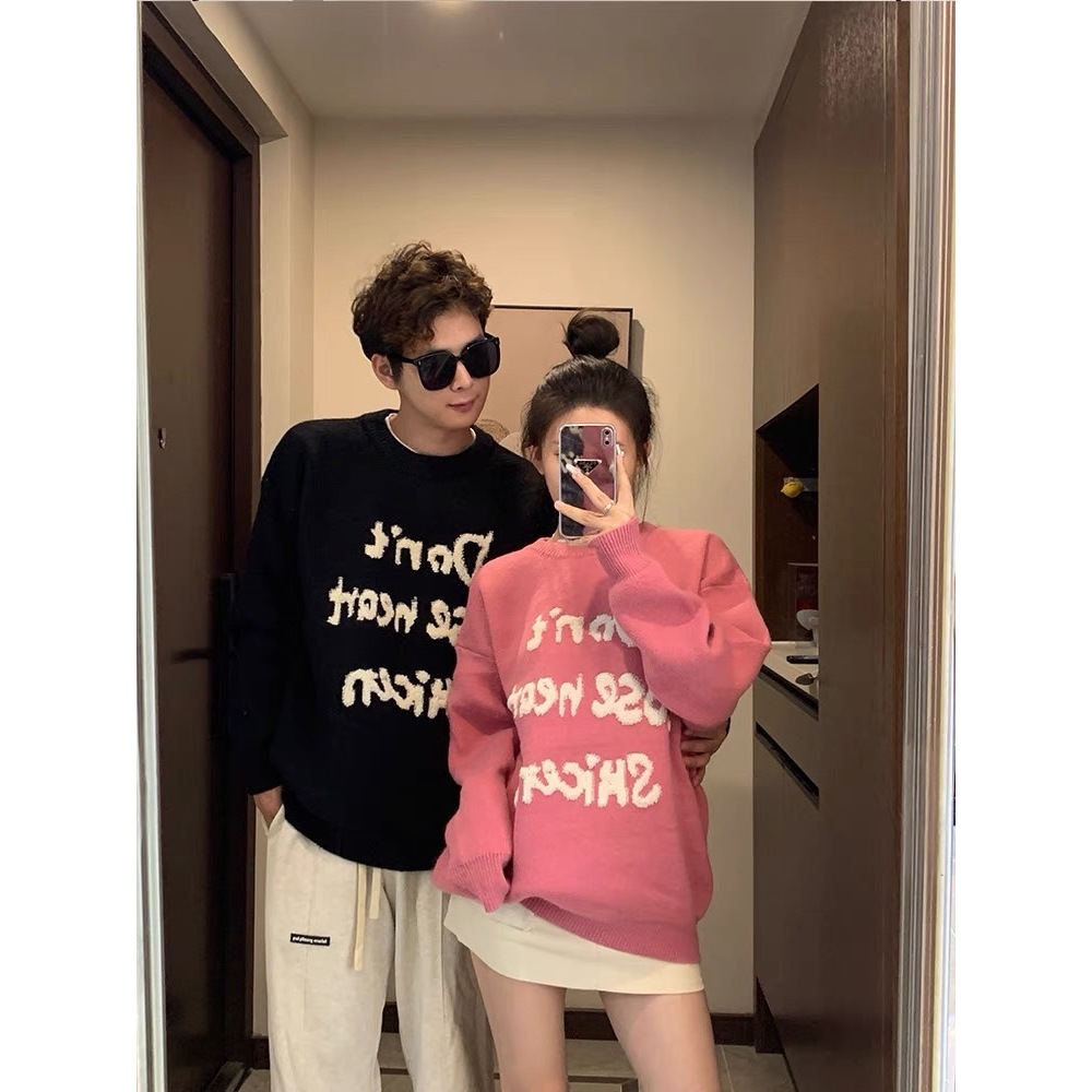 【K-2】DON'T LOSE NEART SMICEN 標語 立體 情侶毛衣 針織毛衣 穿搭 寬鬆落肩【D8821】