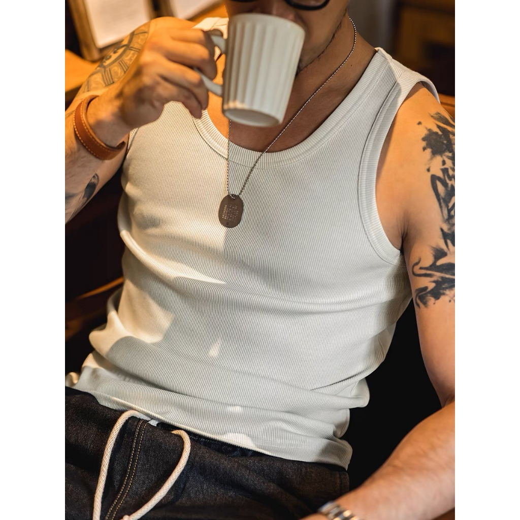 【K-2】超彈性 棉質 穿搭吊嘎 螺紋背心 螺紋 純棉 背心 素面 運動背心 健身 平背 坦克背心 情侶 【Y001】