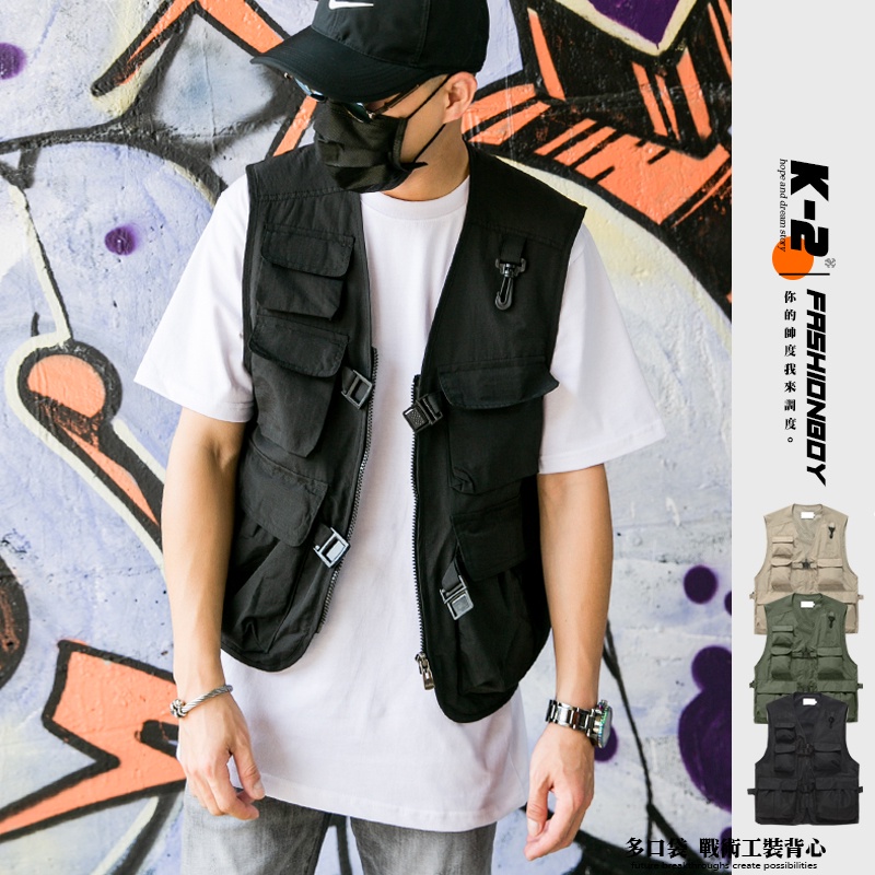【K-2】多口袋 釣魚背心 戰術 工裝 古著 穿搭 背心 口袋背心 工裝背心 男女不拘【G0793】