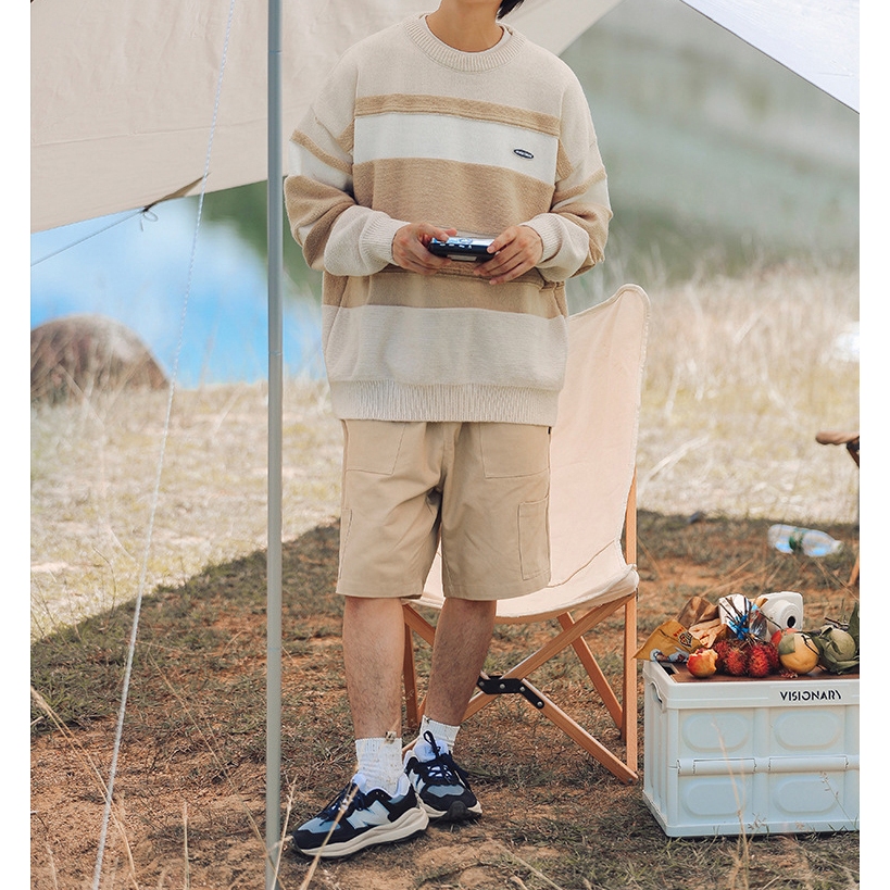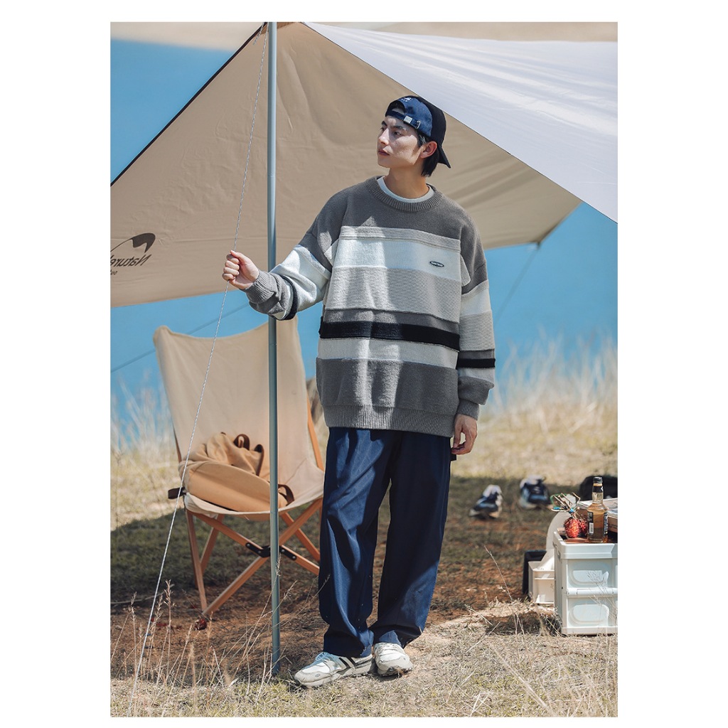 【K-2】文青港風 小圓標 logo 夾心條毛衣 撞色毛衣 條紋 針織衫 毛衣 上衣 情侶 針織毛衣 落肩【w4057】