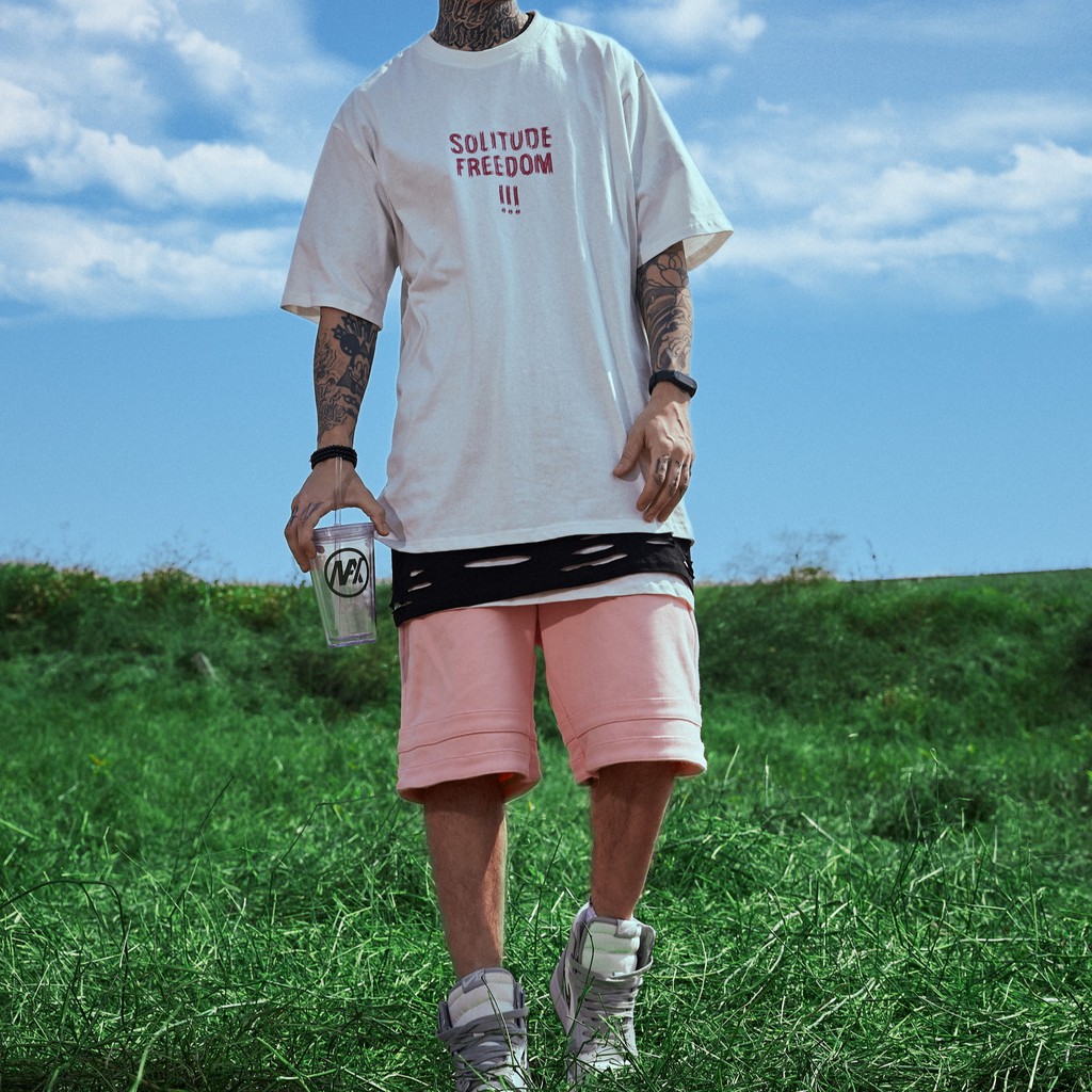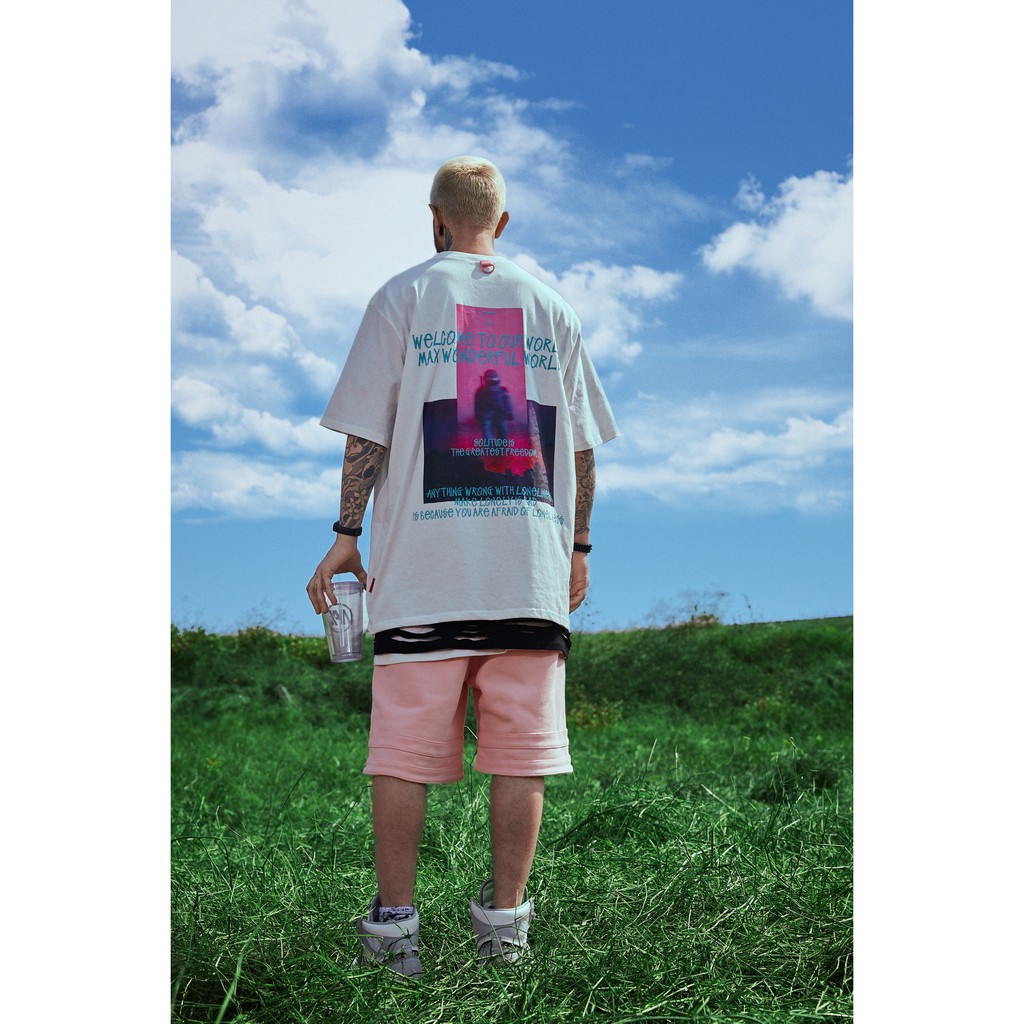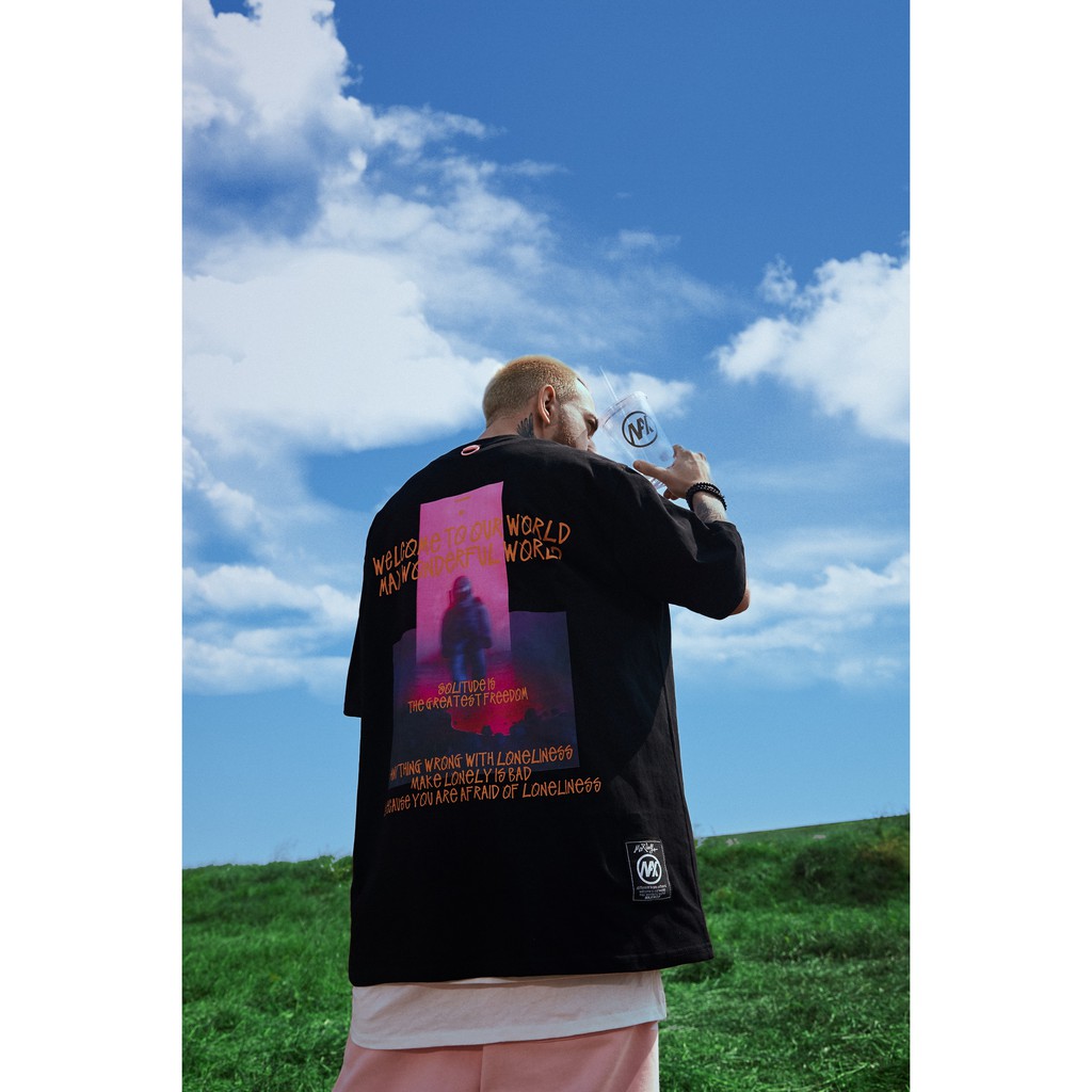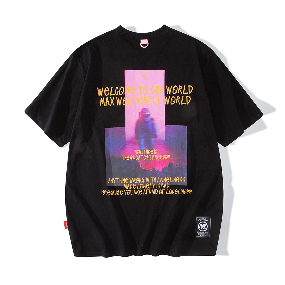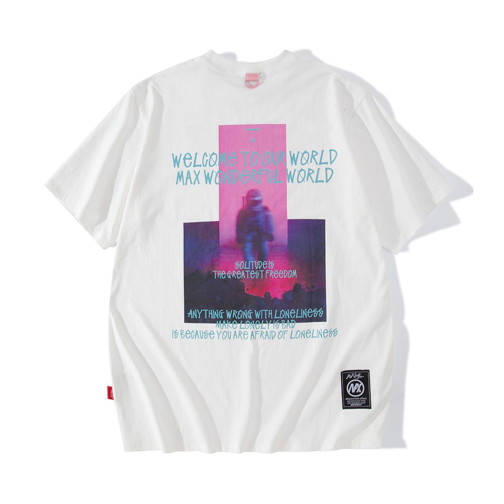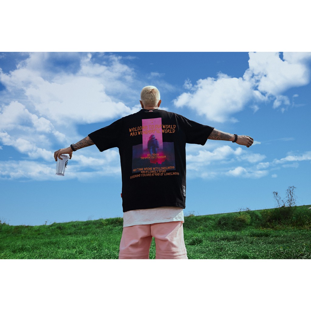 【K-2】MAXWDF SOLITUDE 末日 宇宙人 大圖印花 潮流 寬鬆 五分袖 情侶【BB0588】