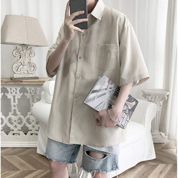 【K-2】韓風 韓系 歐巴 抗皺 直條紋 Y2K 質感穿搭 簡約時尚 潮流 街頭 五分袖 短袖襯衫 男女不拘【KD19】