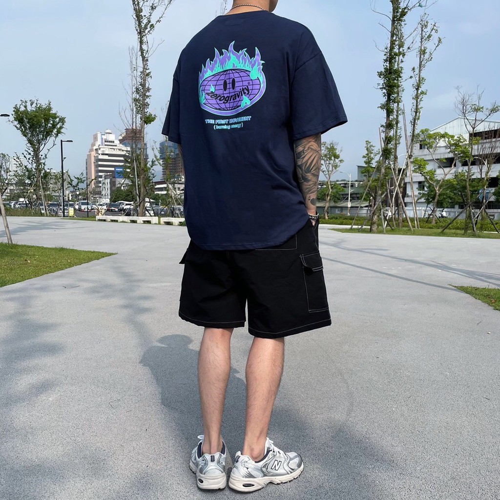 【K-2】zerogravity 微笑 火燒地球 火焰 地球 smile 笑臉 寬鬆 短t 潮流 上衣 短袖【K371】