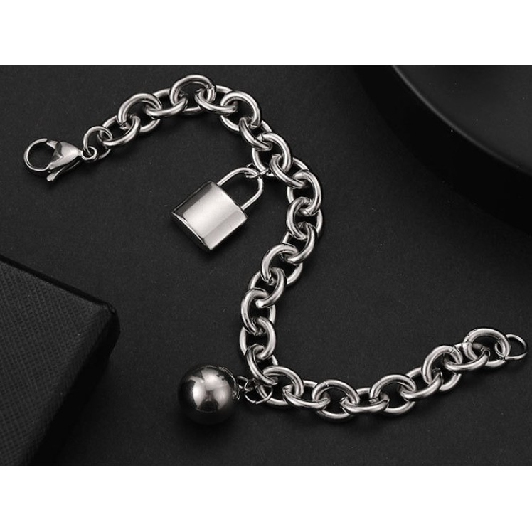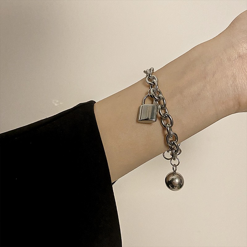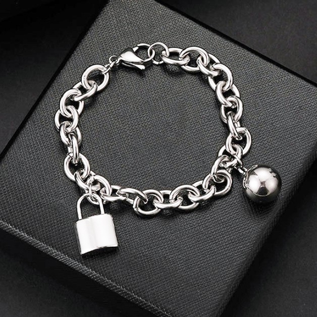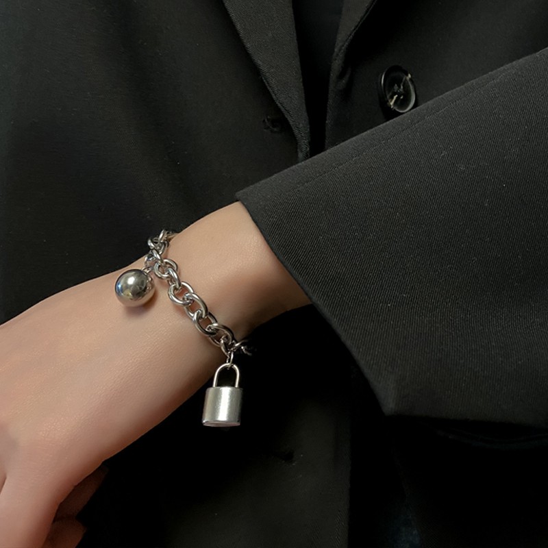 【K-2】韓風 金屬質感 穿搭 搭配 鎖頭 鐵球 簡約時尚 手鍊 配件 飾品 韓系 男女不拘 情侶款【KP326】