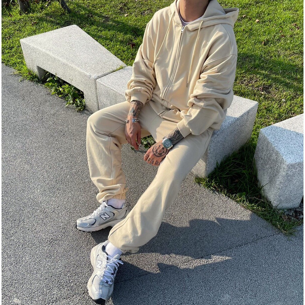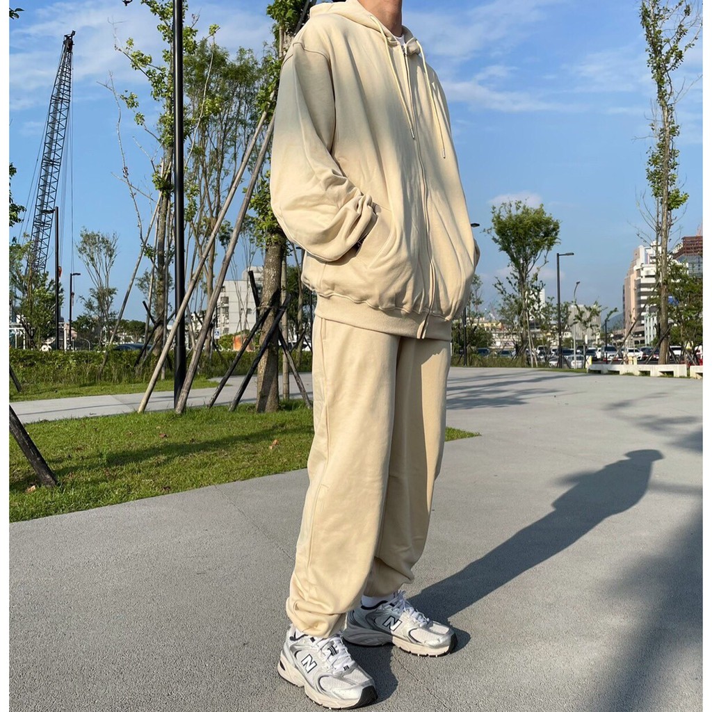 【K-2】OVERSIZE 杏色寬褲 寬鬆 縮口褲 棉褲 棉長褲 HIPHOP VIBE 杏色 長褲 休閒【KL4】