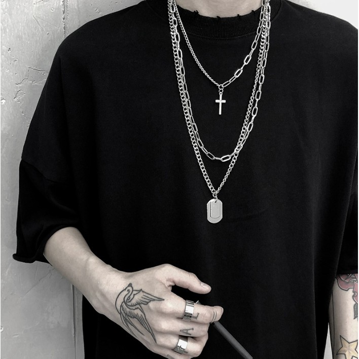 【K-2】暗黑 TRAP 三合一 十字架 軍牌 項鍊 韓系穿搭 陷阱 網美 抖音 飾品 配件 男女不拘【KP277】