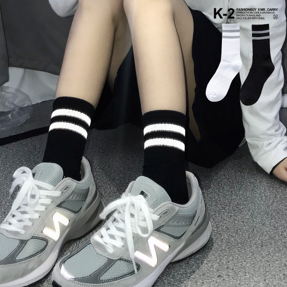 【K-2】百搭 3M 反光 線條 反光條 雙線條 潮流 街頭 長襪 中筒襪 搭配 TRAP 襪子 男女不拘【KP268】