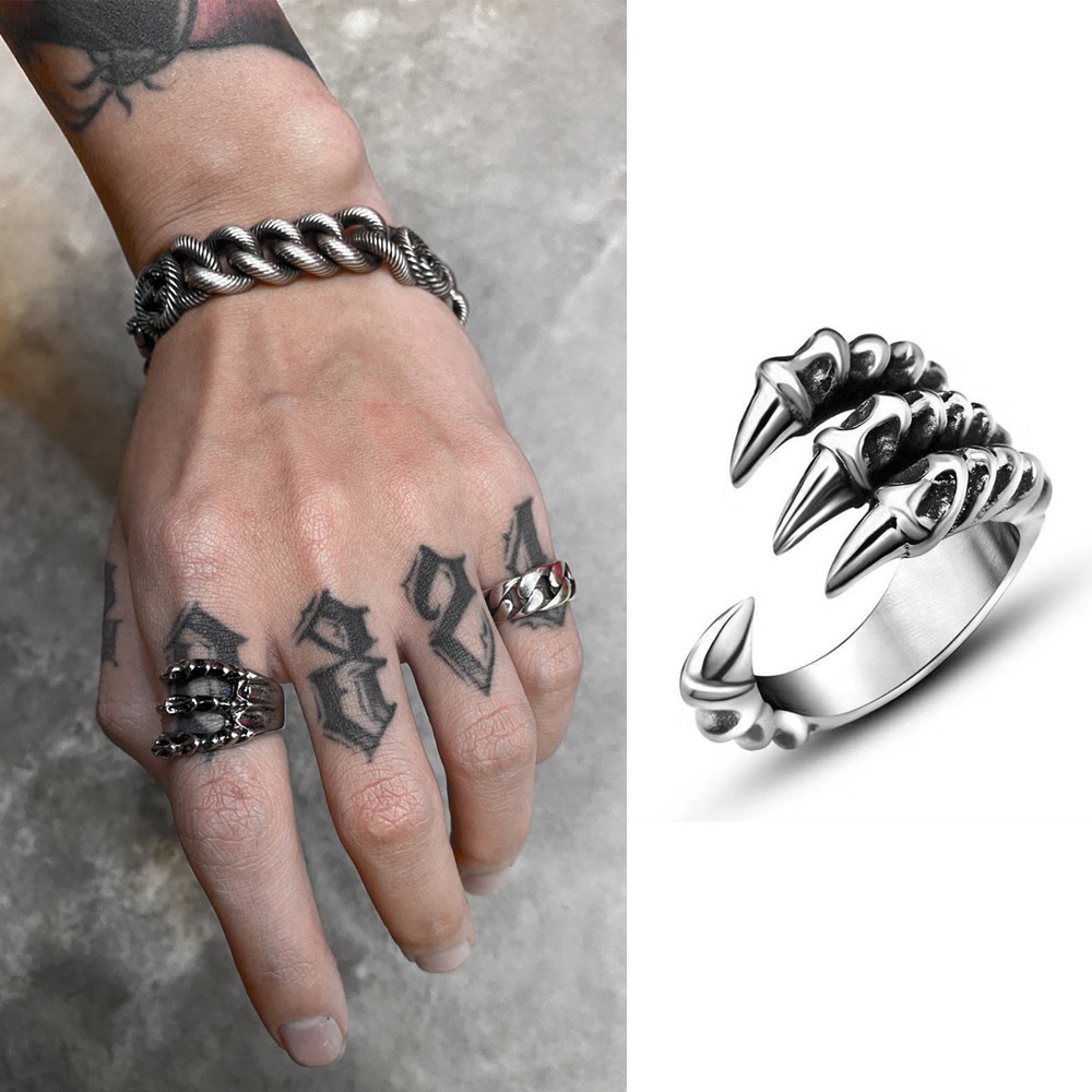 【K-2】金屬質感 刷舊 古著 龍抓 戒指 TRAP 暗黑 美式 抖音 網美 男女不拘 飾品 配件【KP284】