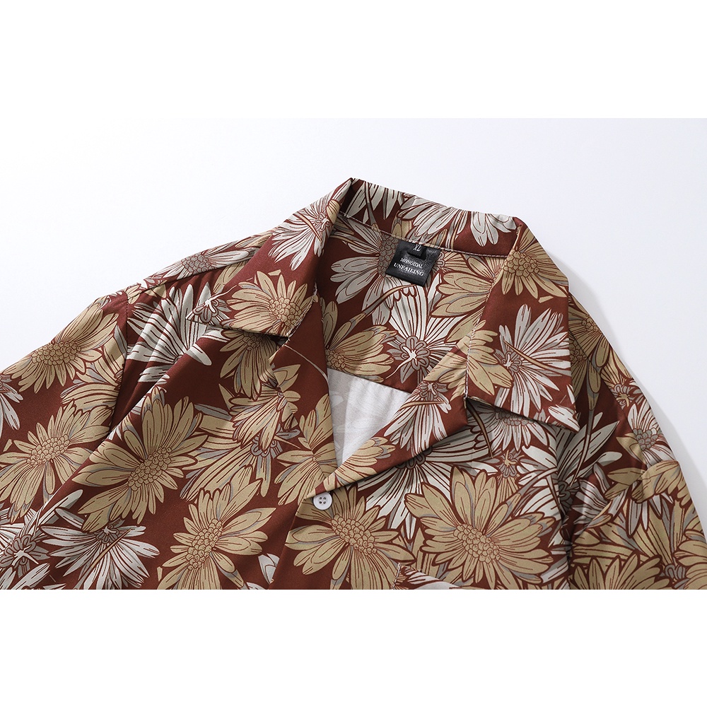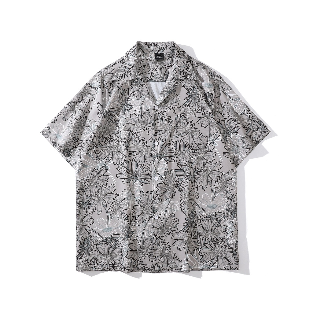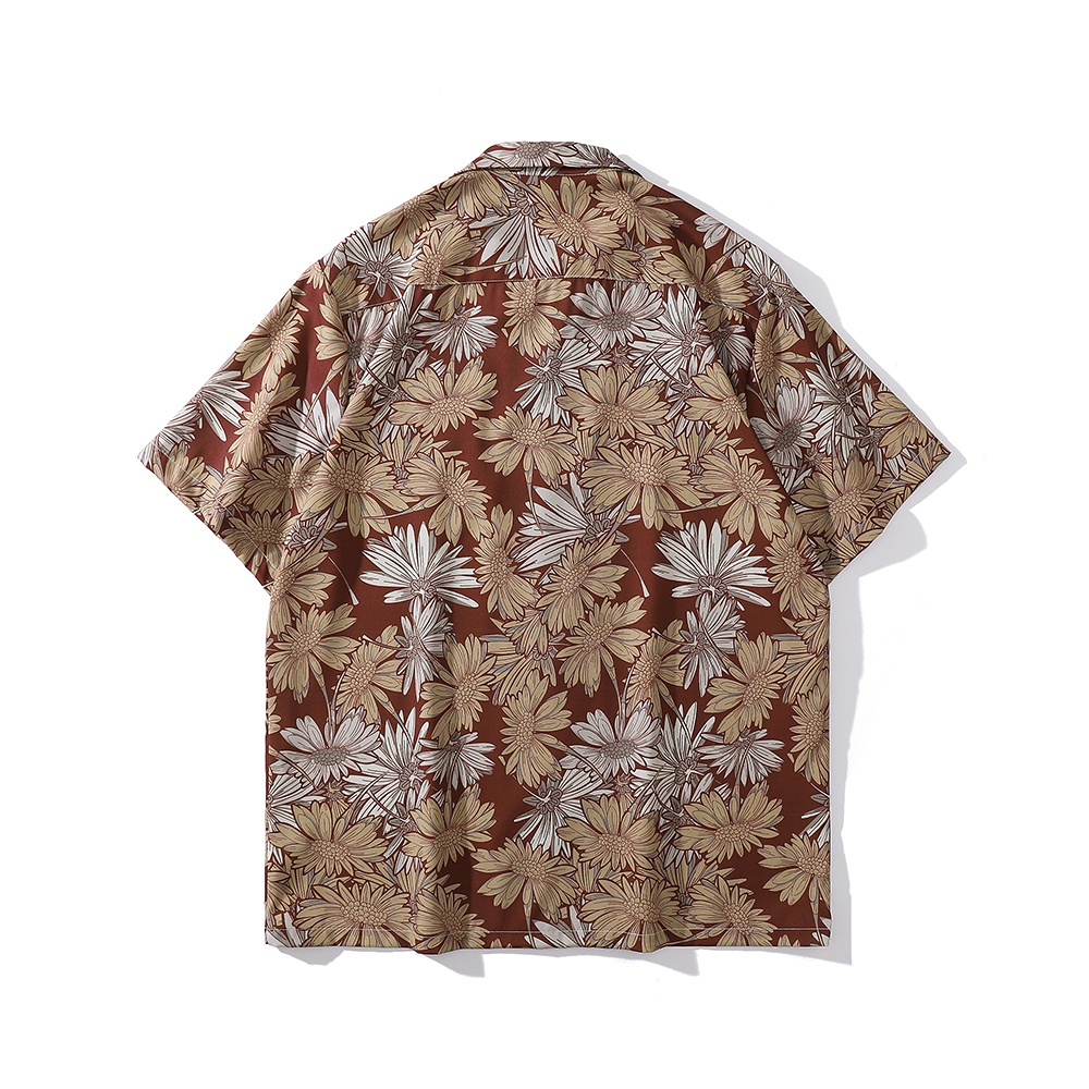 【K-2】向陽花 滿版 古巴短袖襯衫 花襯衫 港風 海邊 復古 襯衫 寬鬆 落肩 痞子襯衫【BX7036】