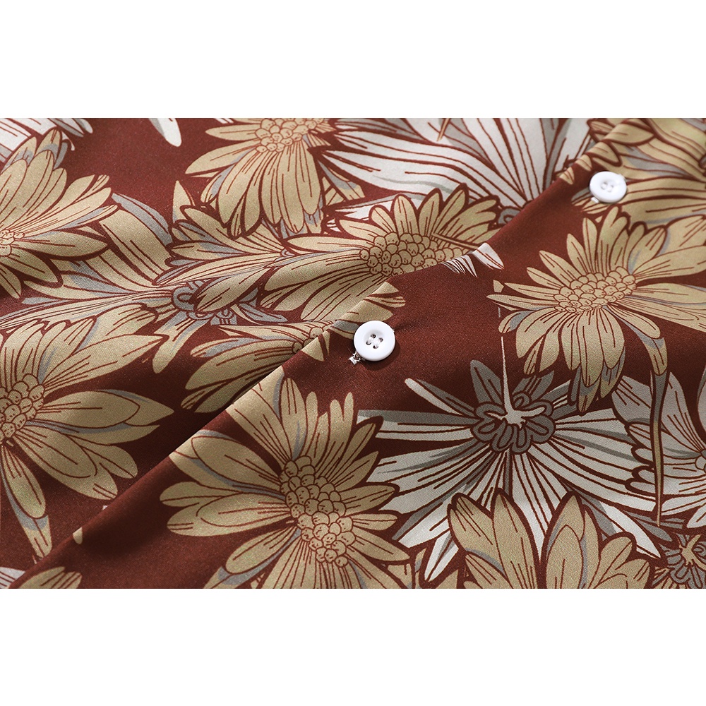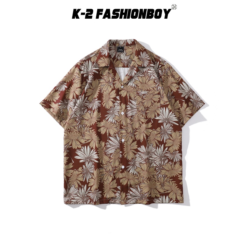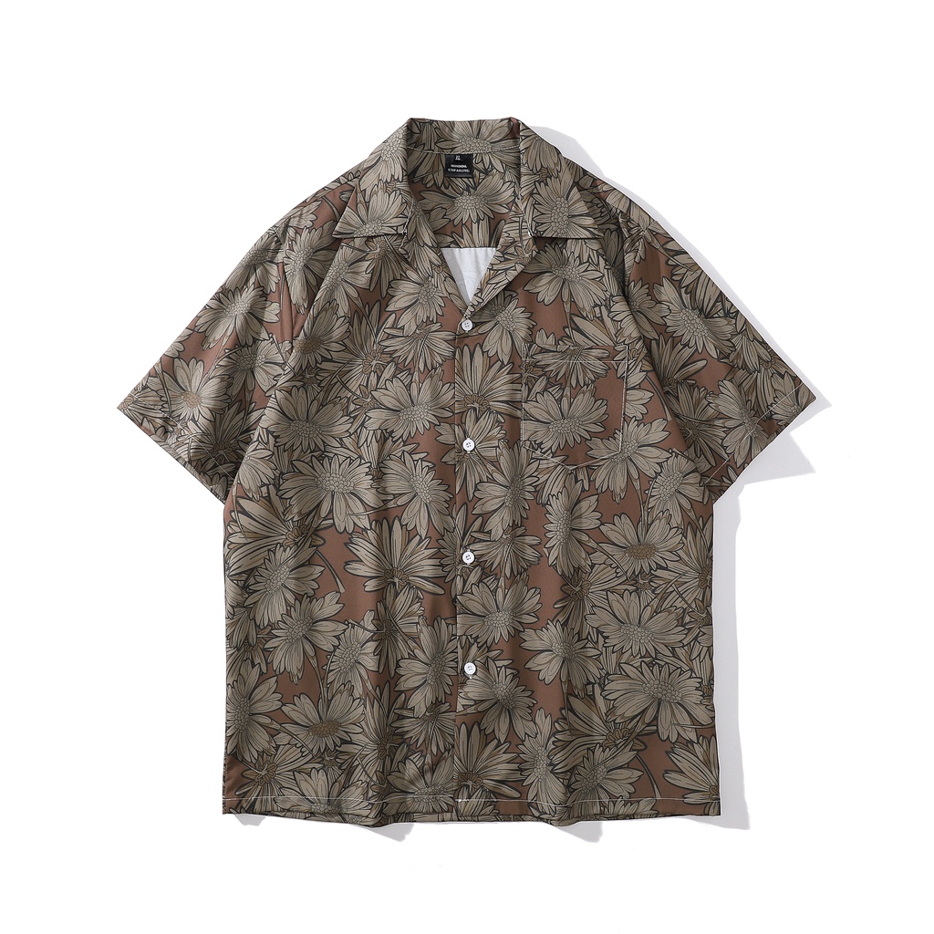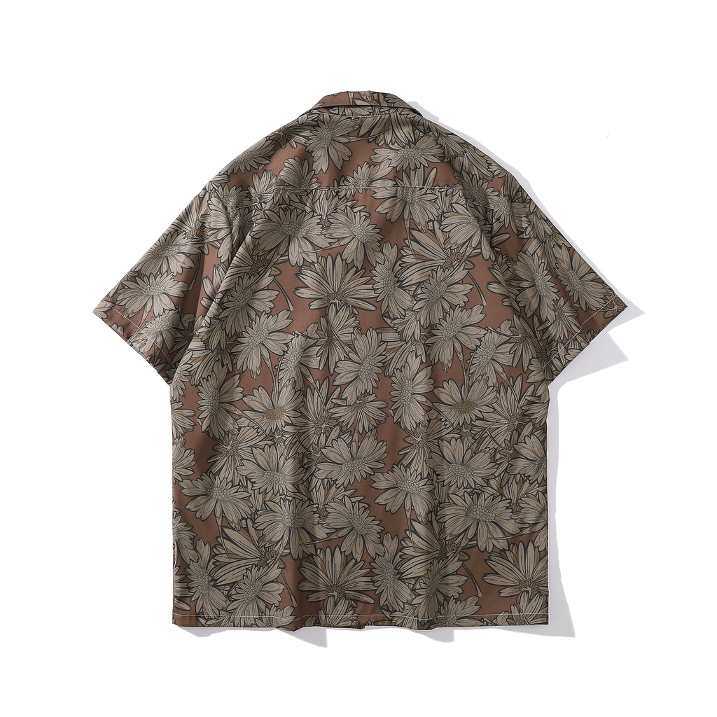 【K-2】向陽花 滿版 古巴短袖襯衫 花襯衫 港風 海邊 復古 襯衫 寬鬆 落肩 痞子襯衫【BX7036】