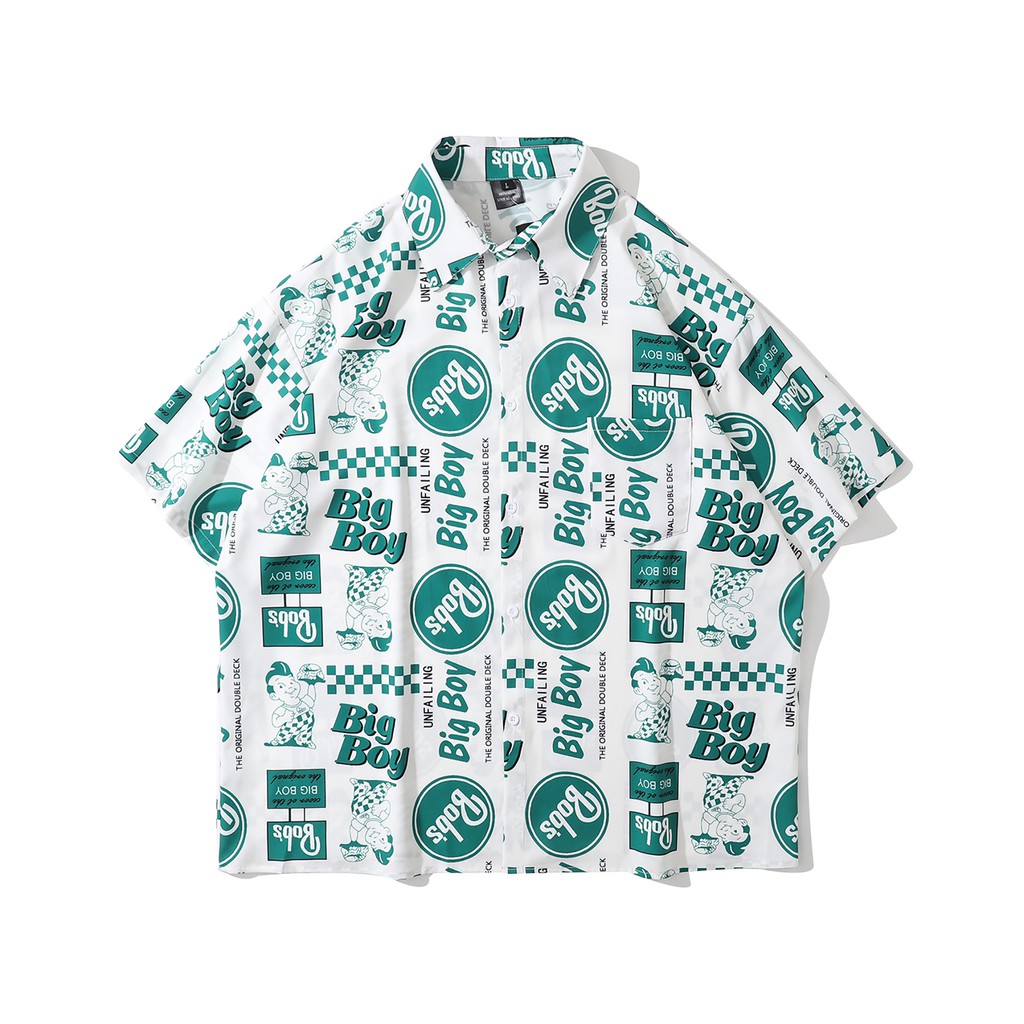 【K-2】BIG BOY 美式 招牌 漢堡小子 花襯衫 短袖襯衫 上衣 春夏 襯衫 潮流襯衫 短袖【B3069】