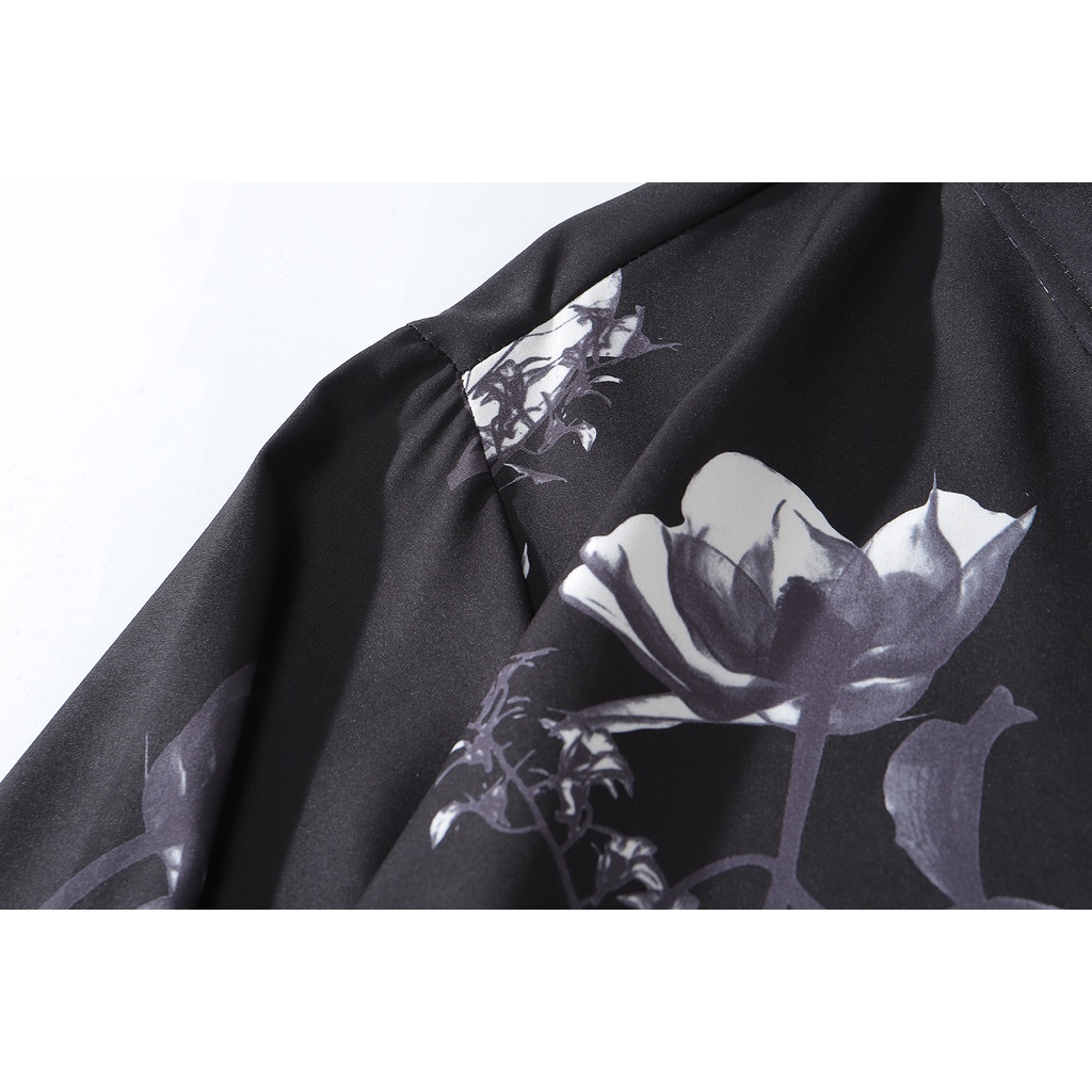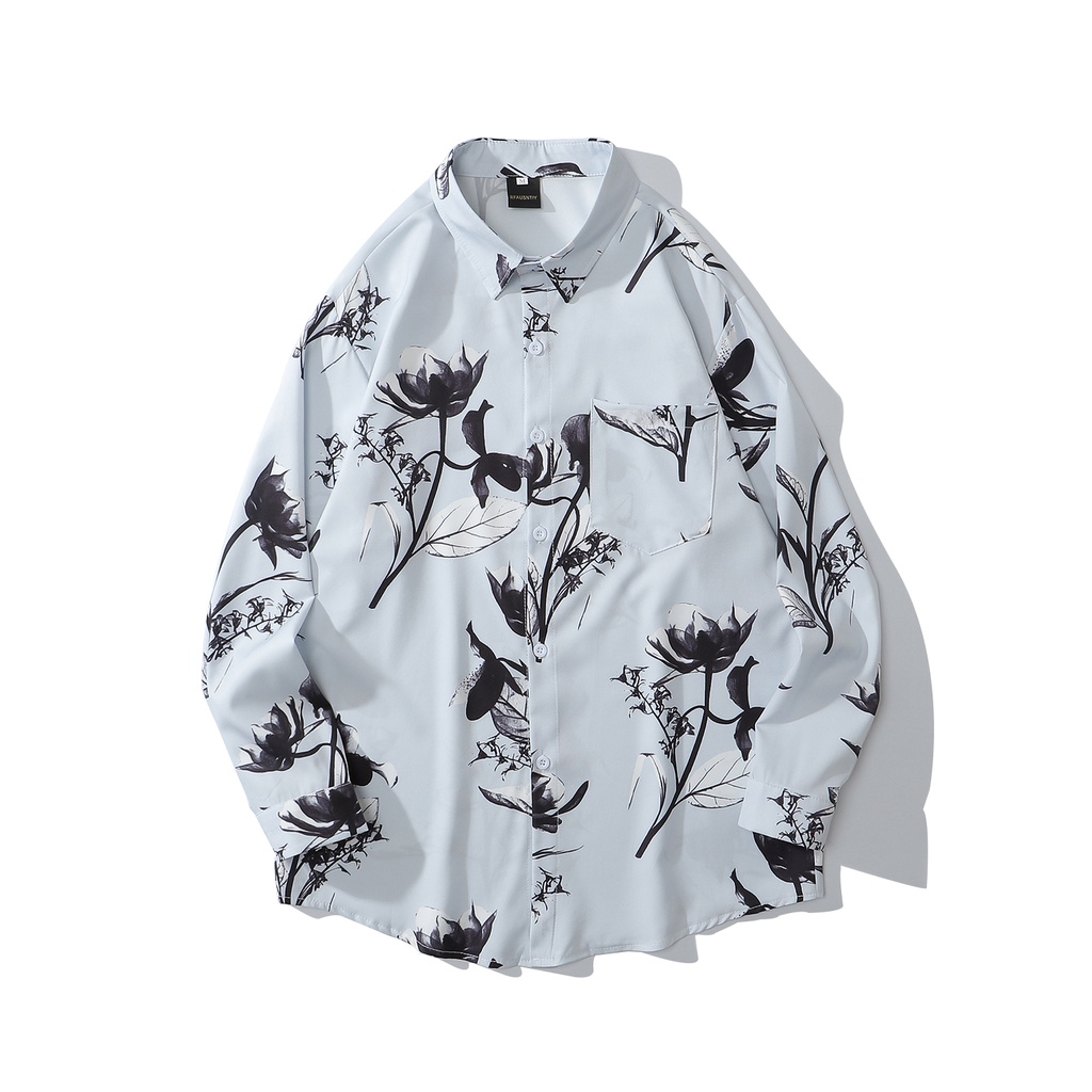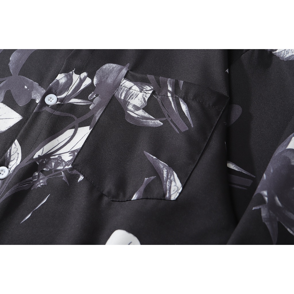 【K-2】黑白花卉 玫瑰 口袋襯衫 長袖襯衫 花襯衫 穿搭 情侶 上衣 襯衫 派對 舞會 牛郎 落肩【B2018】
