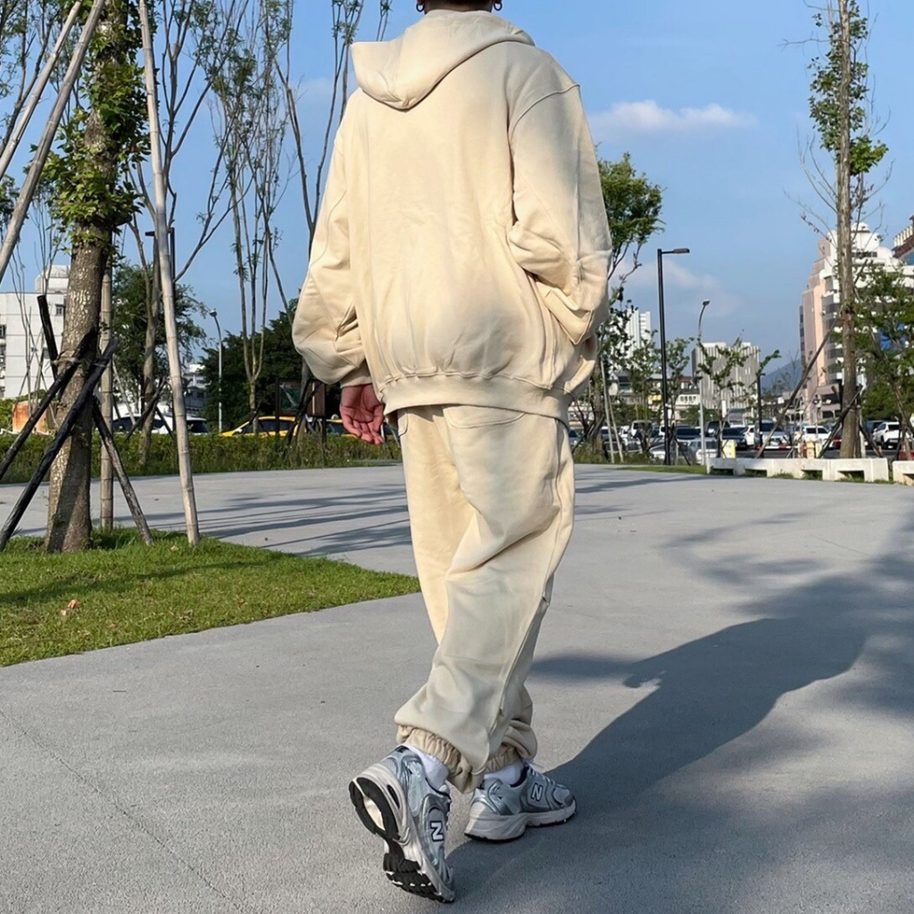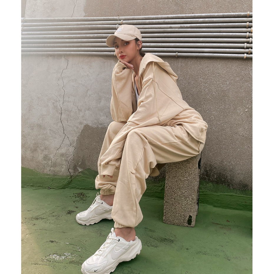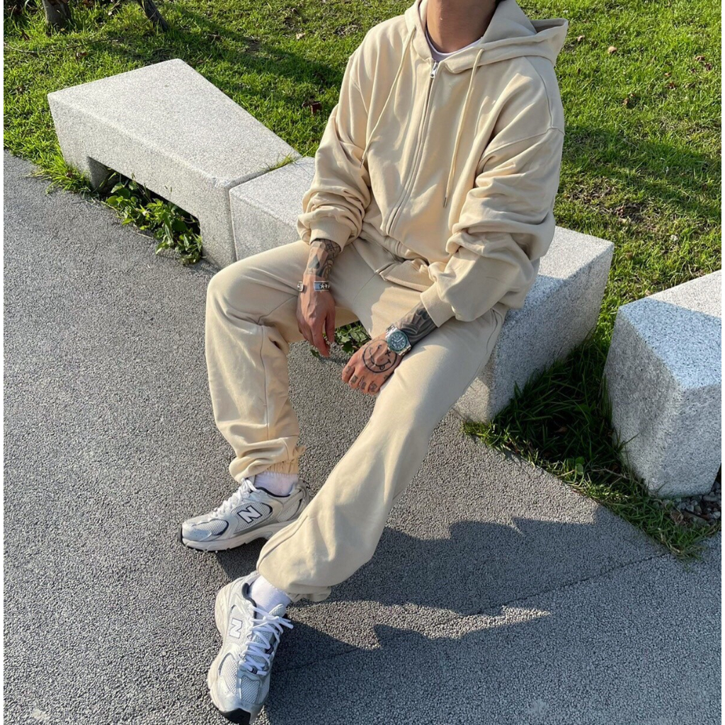 【K-2】OVERSIZE 杏色外套 寬鬆 縮口褲 HIPHOP VIBE 棉長褲 縮口棉褲 現貨 棉褲 情侶【KL4】