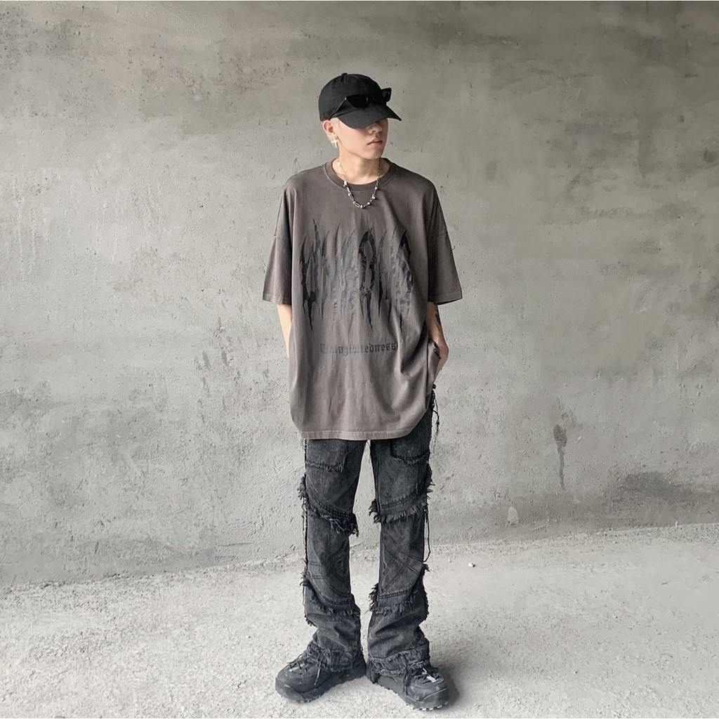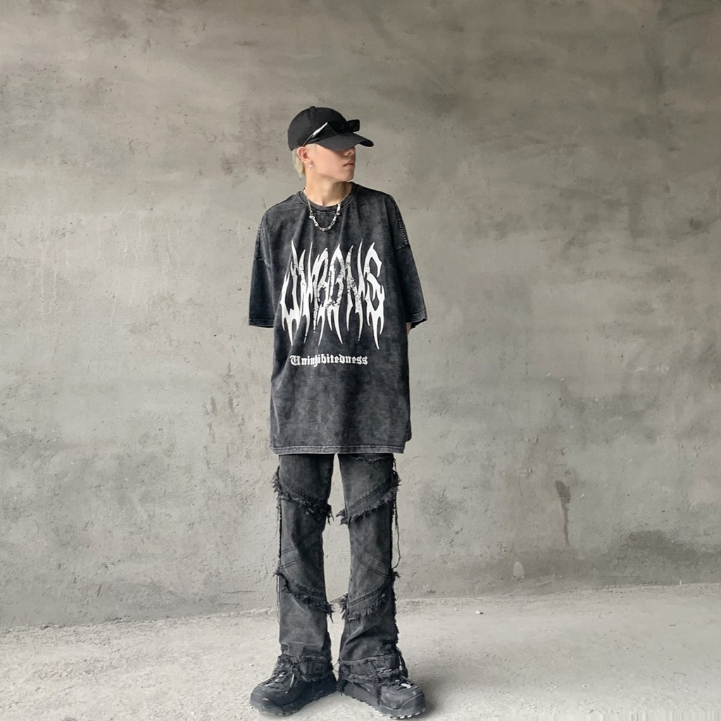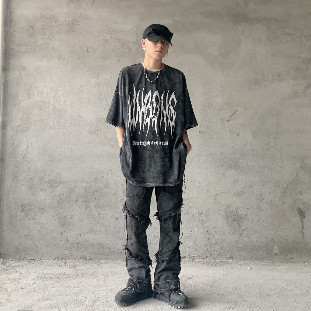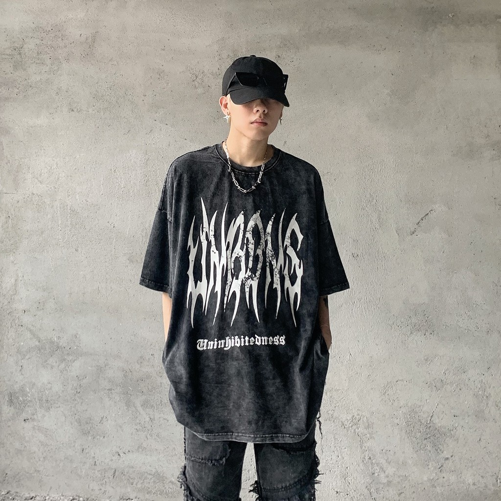 【K-2】UNBDNS 闇夜惡魔 水洗T 古著 水洗 歌德字 暗黑短T 潮流上衣 街頭 男女不拘 短袖【BST121】