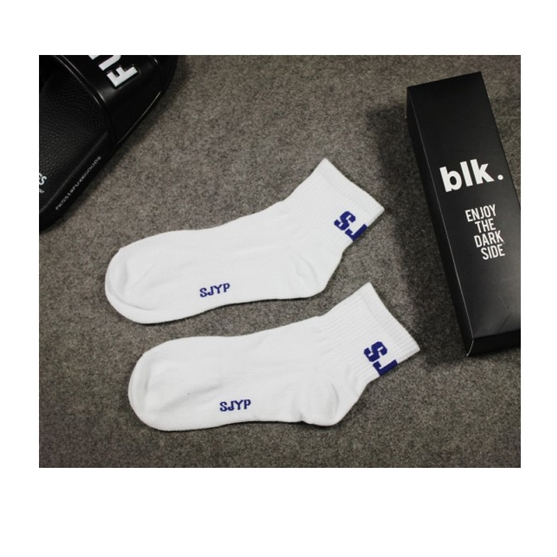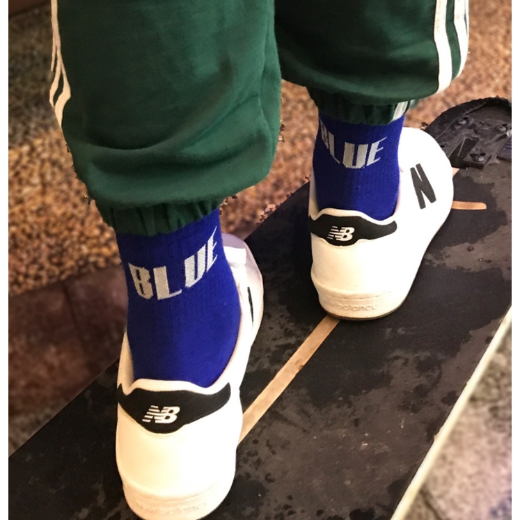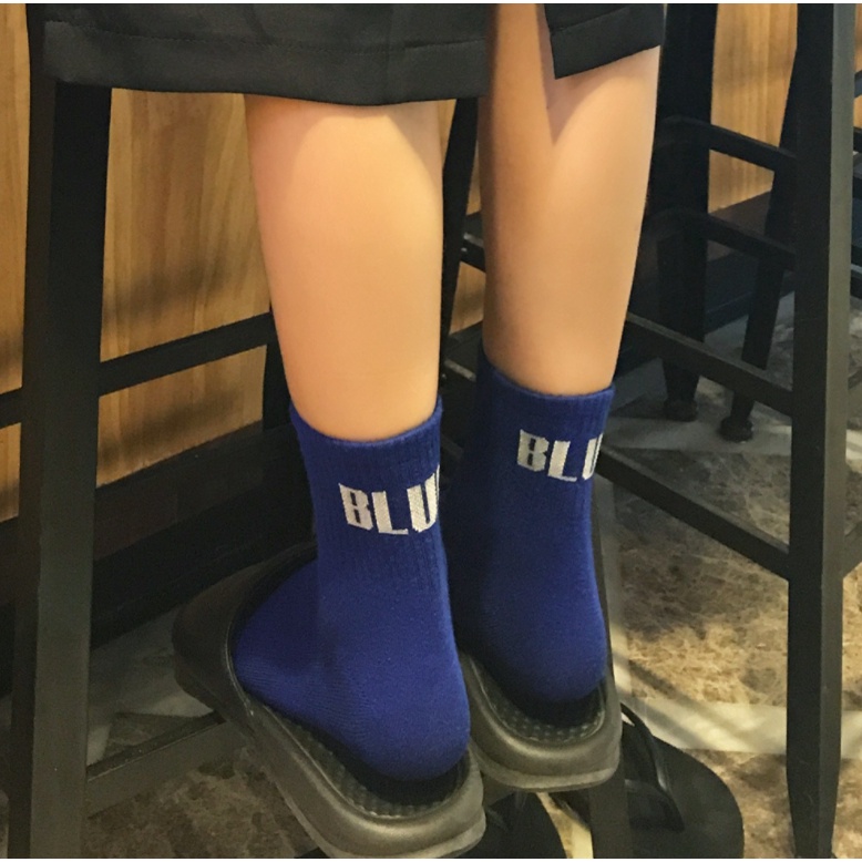 【K-2】簡約英文 BLUE SJYP 潮流襪 中筒襪 長襪 潮流 穿搭 襪子 純棉 滑板 藍色襪子【KSJ9】