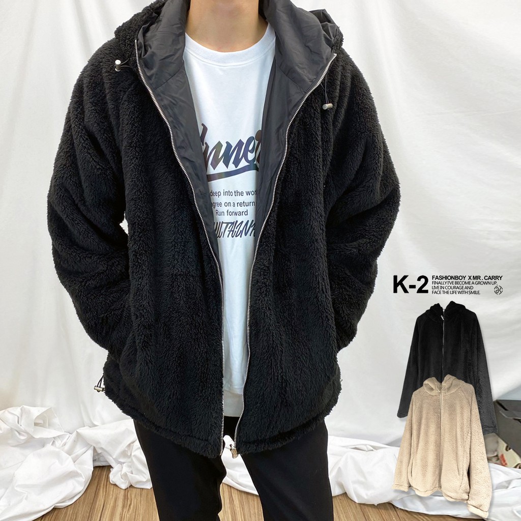 【K-2】絨毛外套 雙面穿 熊熊 毛毛外套 風衣外套 重磅 高質感 韓國街頭 帥到噴水 外套 寬鬆【KD37】