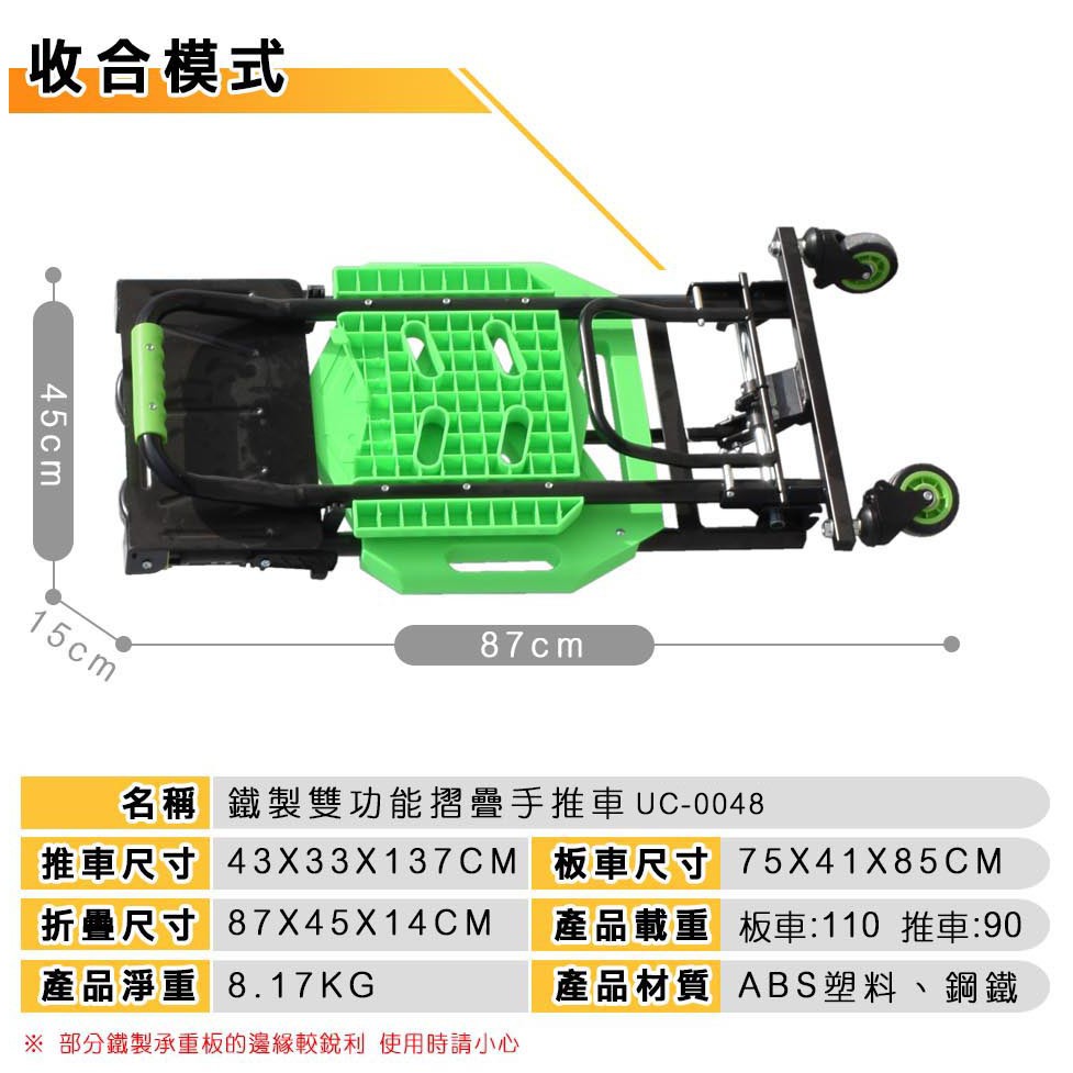 【U-Cart 優卡得】載重110KG 雙功能手推車 摺疊手推車 可變形為 手推車 平板車 UC0048 台灣製造