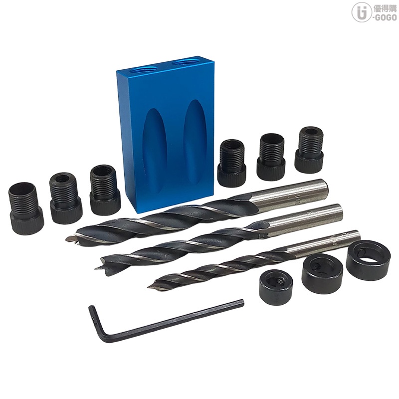 15° 木工斜孔定位器 (14件套組) 鋁合金 木工 鑽孔定位器 鑽頭