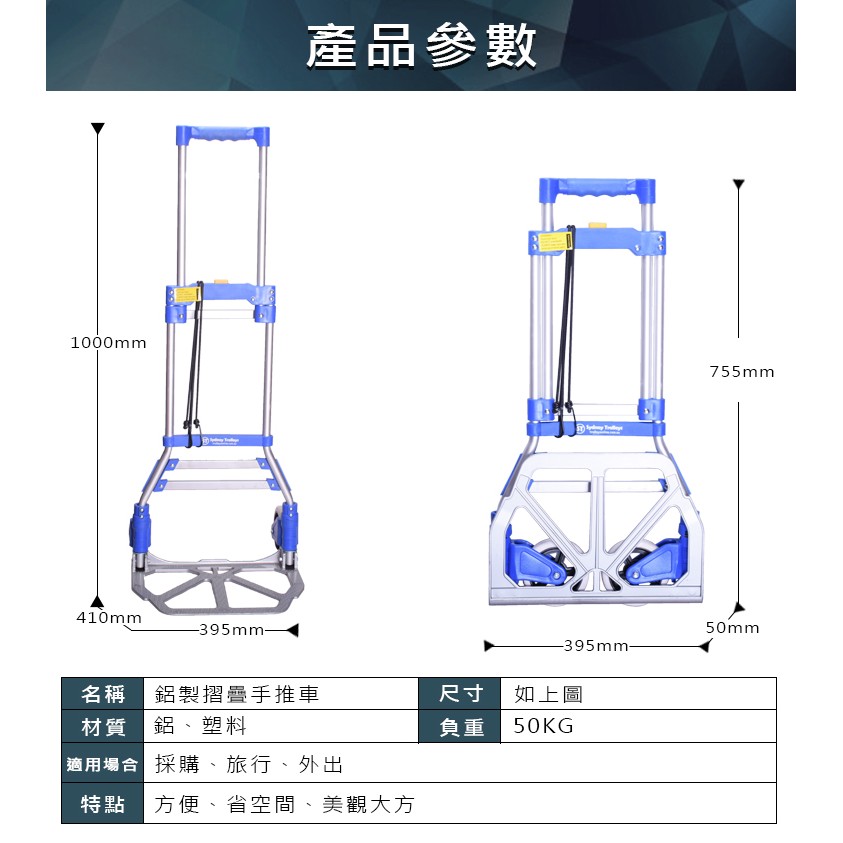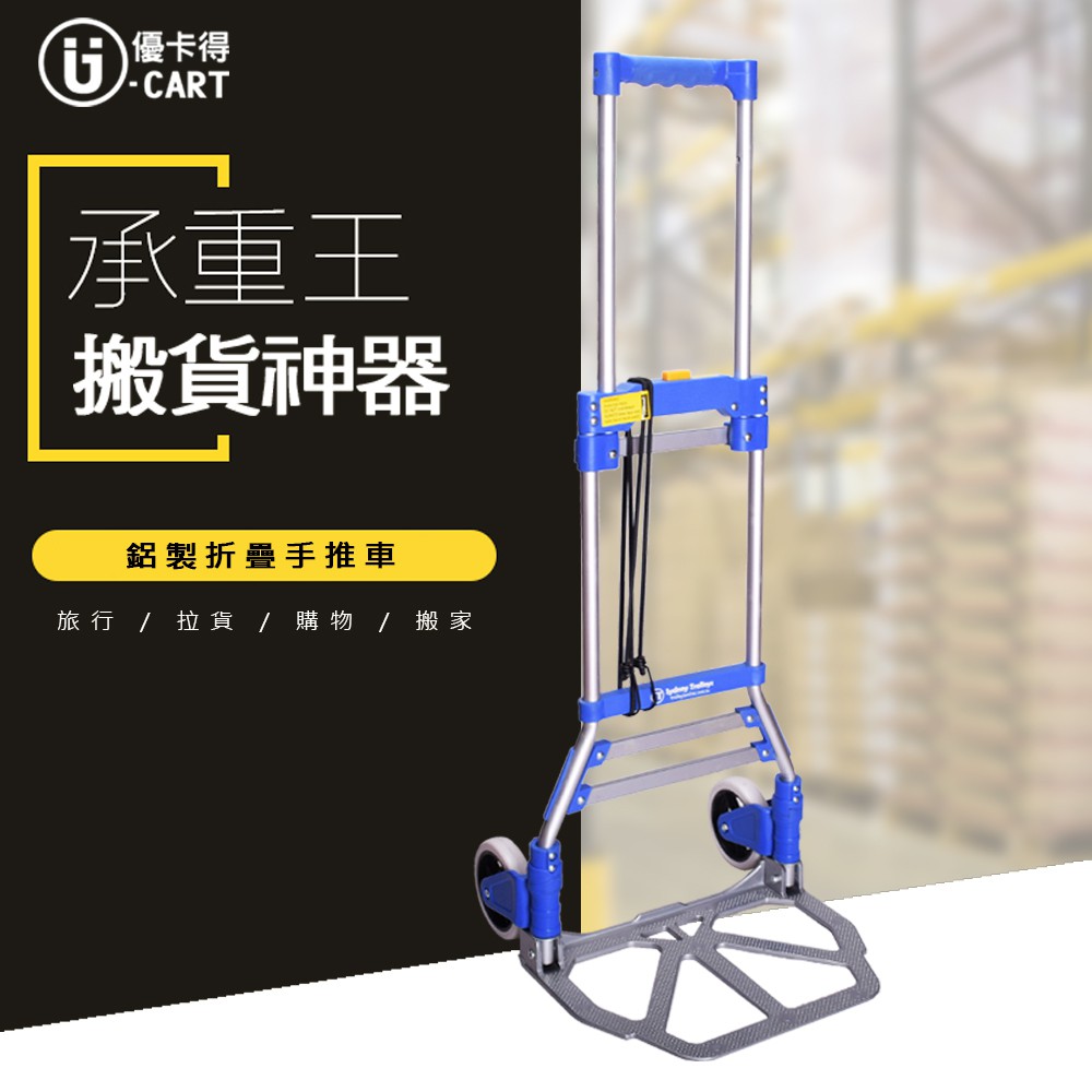 【U-Cart 優卡得】載重50KG 輕量版 鋁製折疊手推車 (附彈性固定繩) 載重50公斤 手推車 UC0034