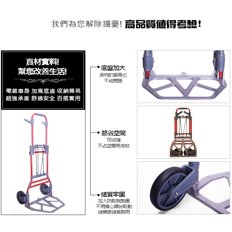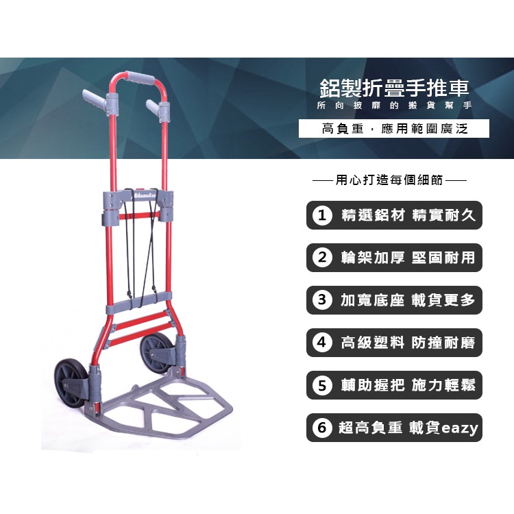 【U-Cart 優卡得】100KG負重 鋁製折疊手推車 手推車 摺疊收納 固定貨物 超高負重 UC0040 台灣製造