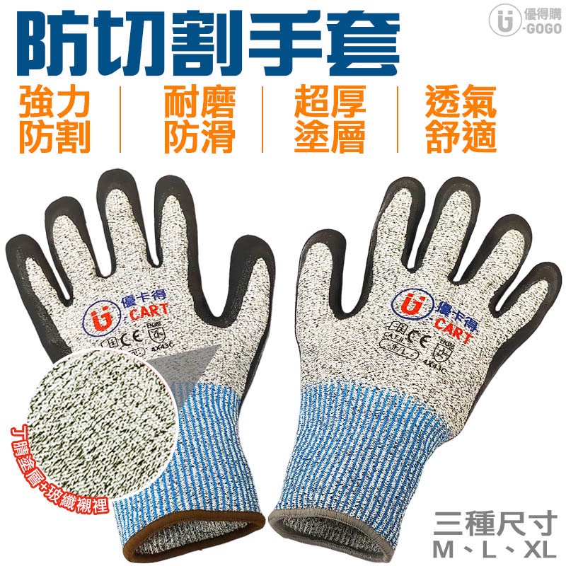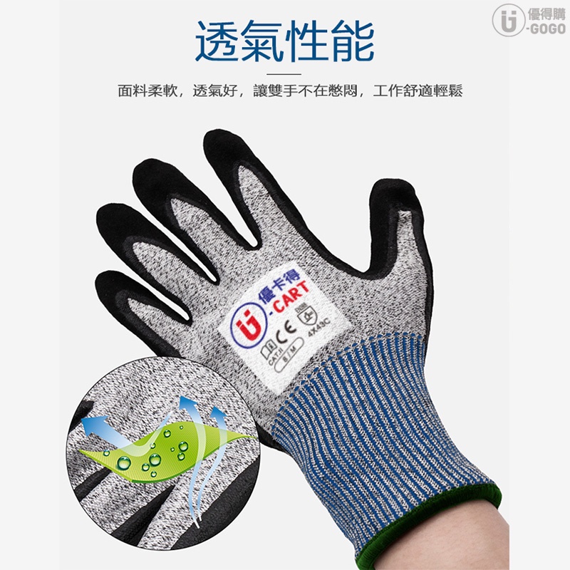 【U-Cart 優卡得】CE5級 加強版 防切割手套 防切割手套 透氣耐磨手套 工作手套 防滑手套 防割手套 止滑手套
