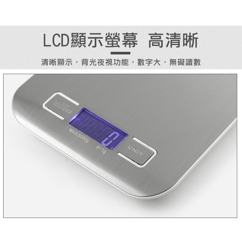 5KG 不鏽鋼電子秤 大秤量 白光 不鏽鋼秤面 廚房秤 磅秤 料理秤 電子秤 珠寶秤【非供交易使用】