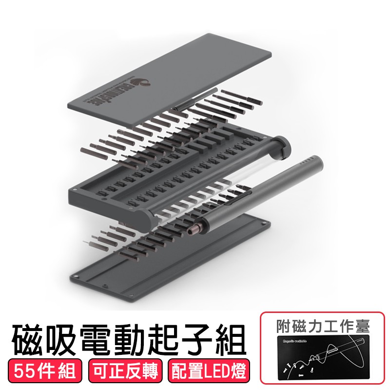 USB 充電電動螺絲起子 55套裝組 LED照明 磁吸式 電動螺絲起子 起子 附磁板
