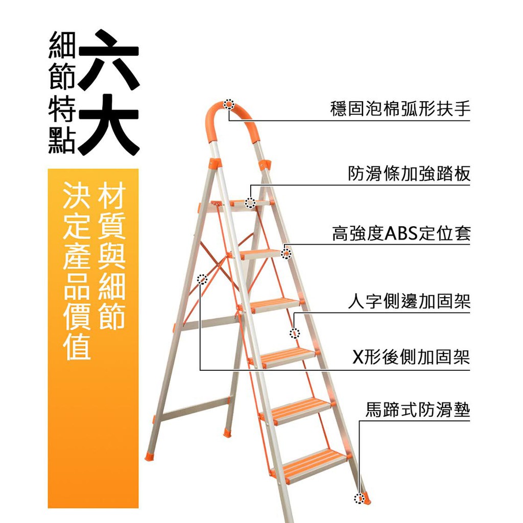 【U-CART】加強止滑 鋁製輕巧 家用梯子 家用梯子 家用梯 摺疊梯 手扶梯 梯子 鋁梯 四階梯 五階梯 六階梯