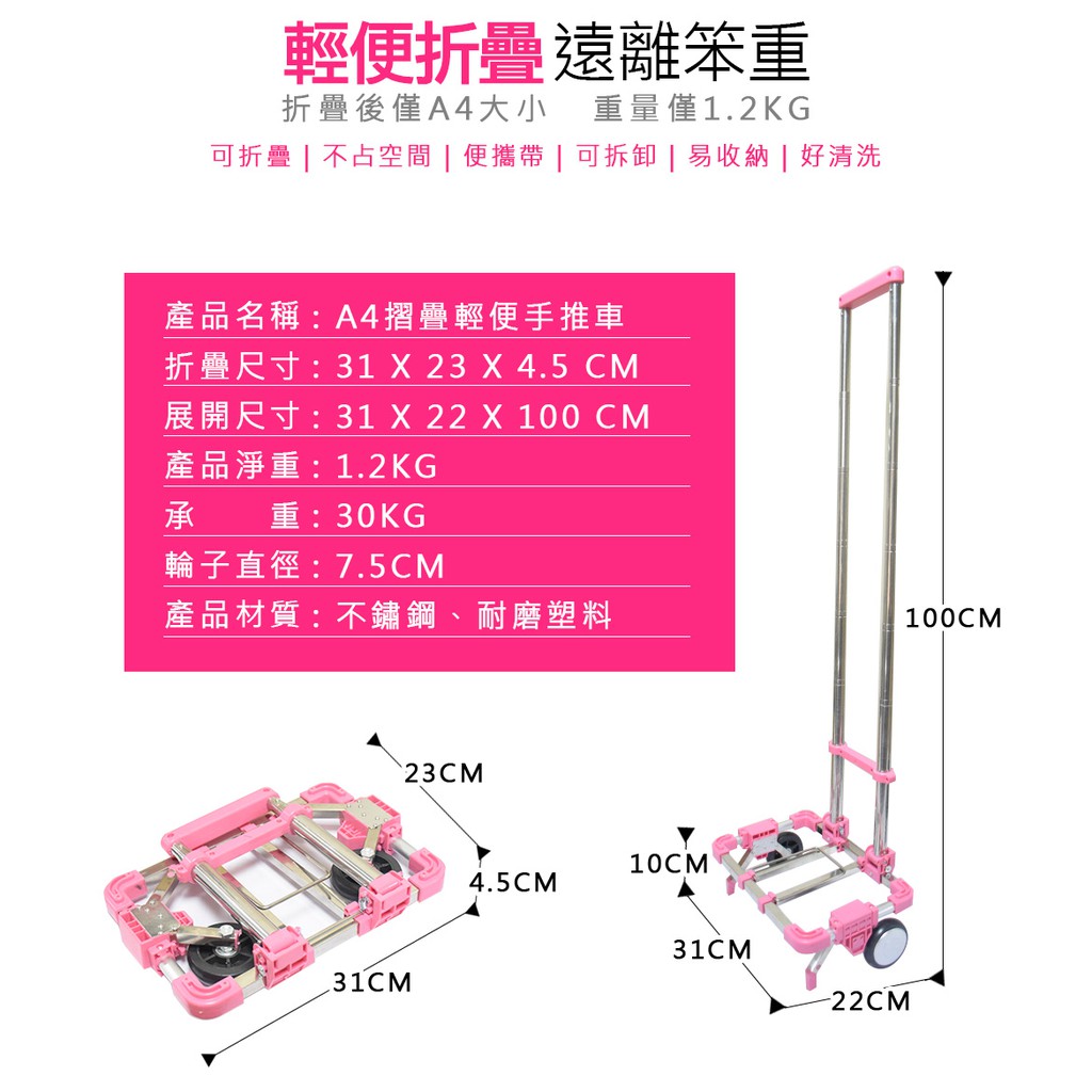 【U-CART 優卡得】A4大小 輕巧款 摺疊手推車 手推車 伸縮折疊手推車 小型手拉車 購物車買菜車 摺疊車