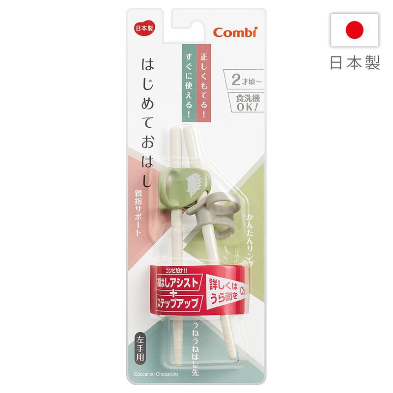 康貝 Combi 三階段彈力學習筷 刺蝟綠(左手用)贈學習筷環保收納袋【衛立兒生活館】