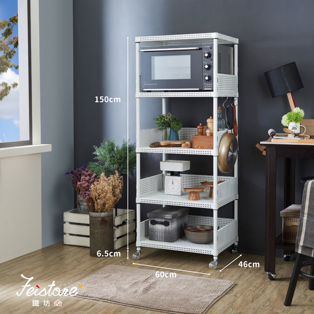 【鐵坊家具】《A十》烤箱五層專用架《含輪》鐵架 貨架 鐵力士 收納 置物 波浪架 展示架 層架 鍍鉻架 組合架 工業風