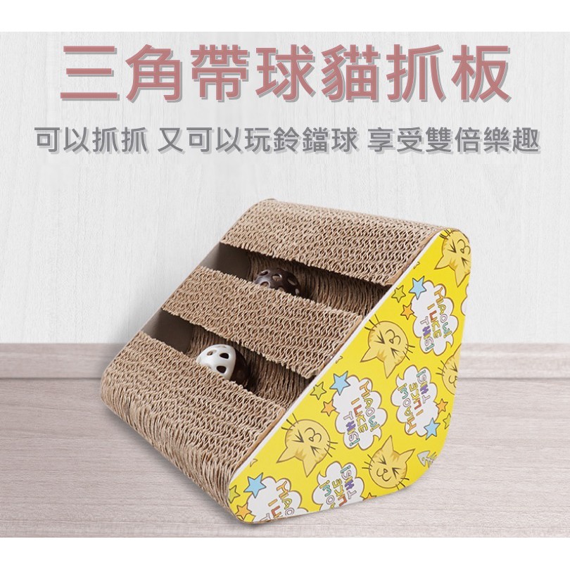 寶麟-優米卡紙抓板-側邊三角帶球 瓦楞紙抓板 貓抓板 貓玩具 貓用品 寵物用品 【佳恩寵物 】