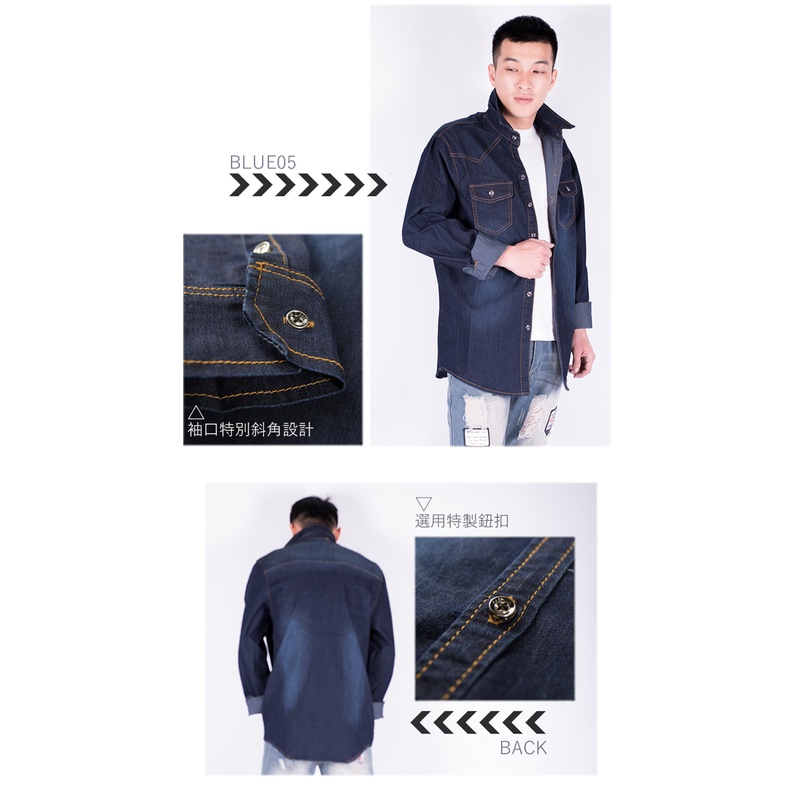 KASO【年終感恩回饋3件1500】胸前雙口袋牛仔襯衫 牛仔外套 工作襯衫 多口袋襯衫 男 長袖襯衫8801