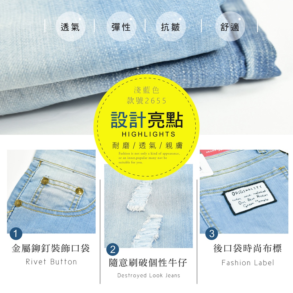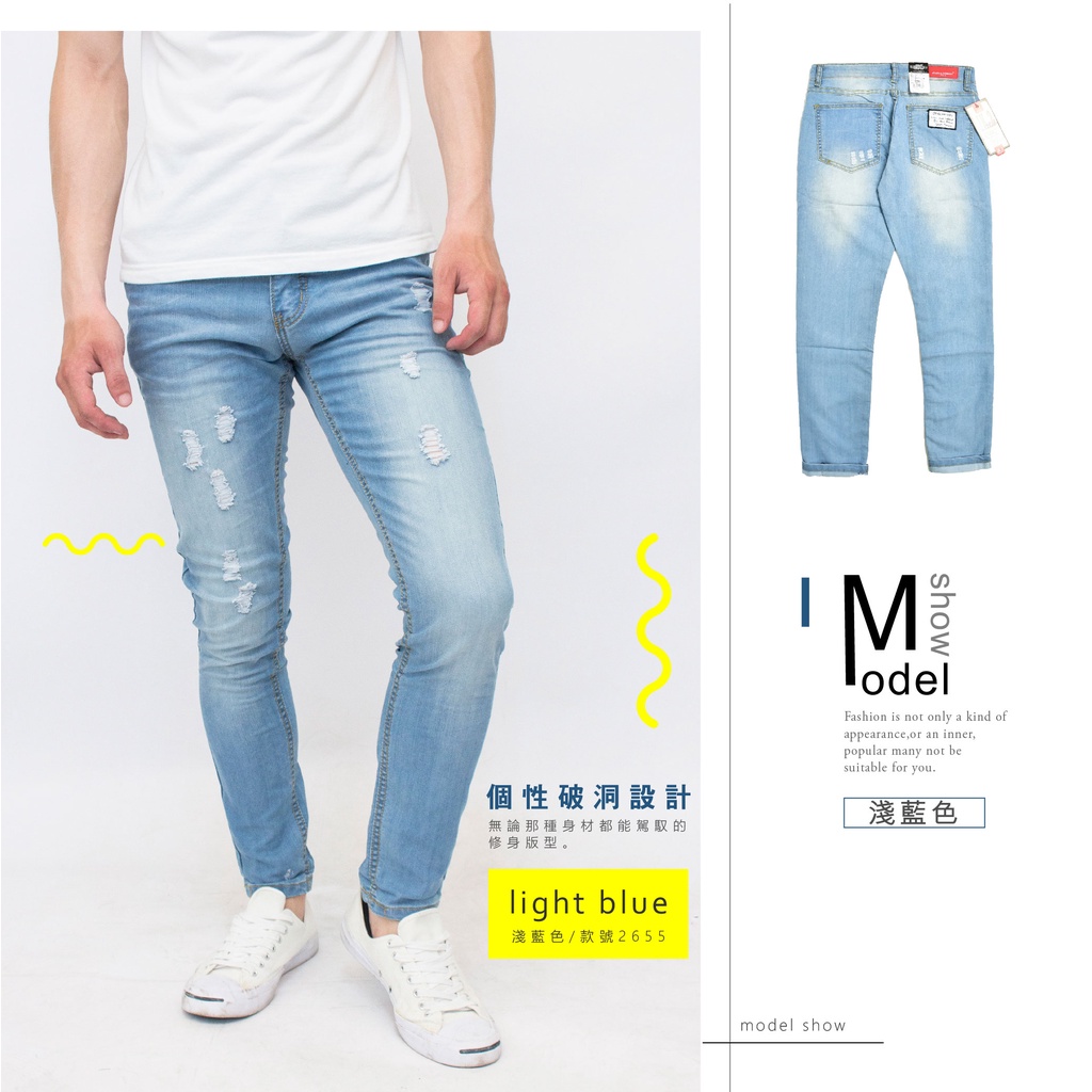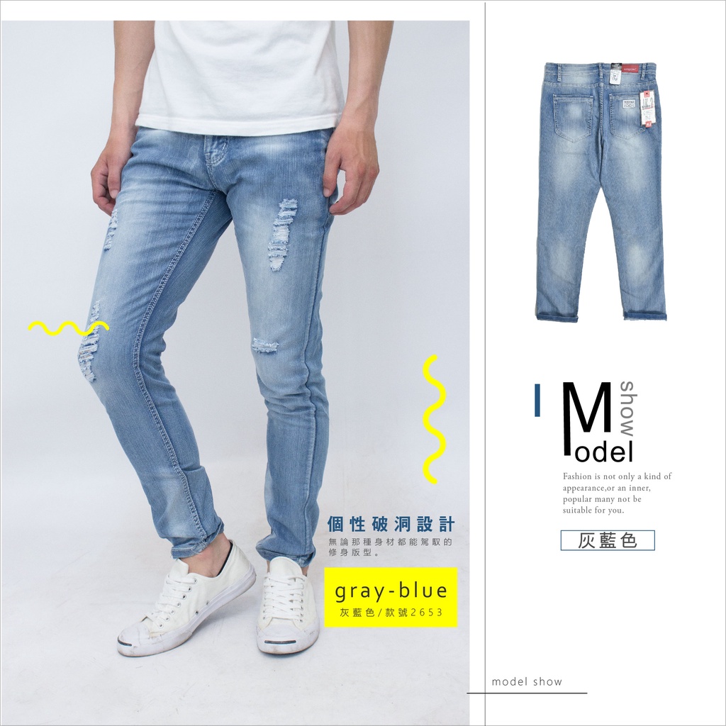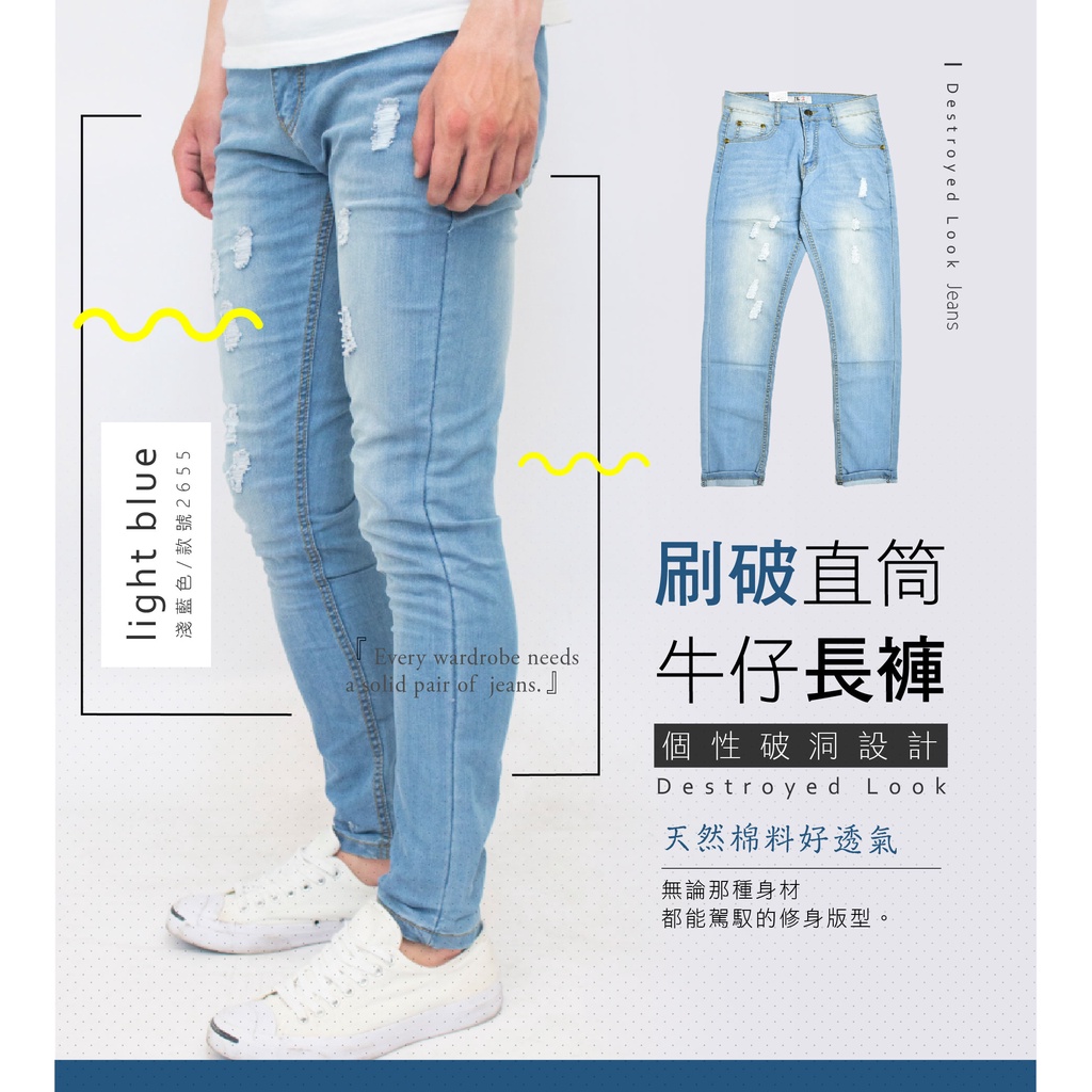 KASO【年終感恩回饋3件1299】刷破刷色小直筒牛仔長褲 牛仔褲 淺藍 男 女 2653