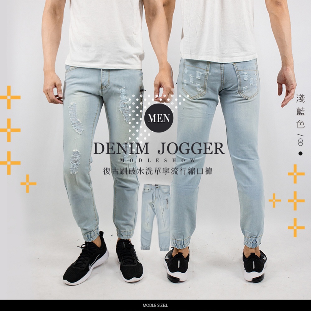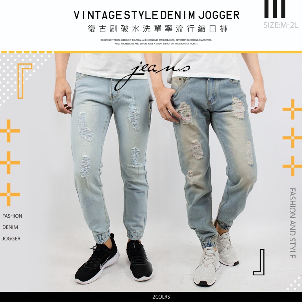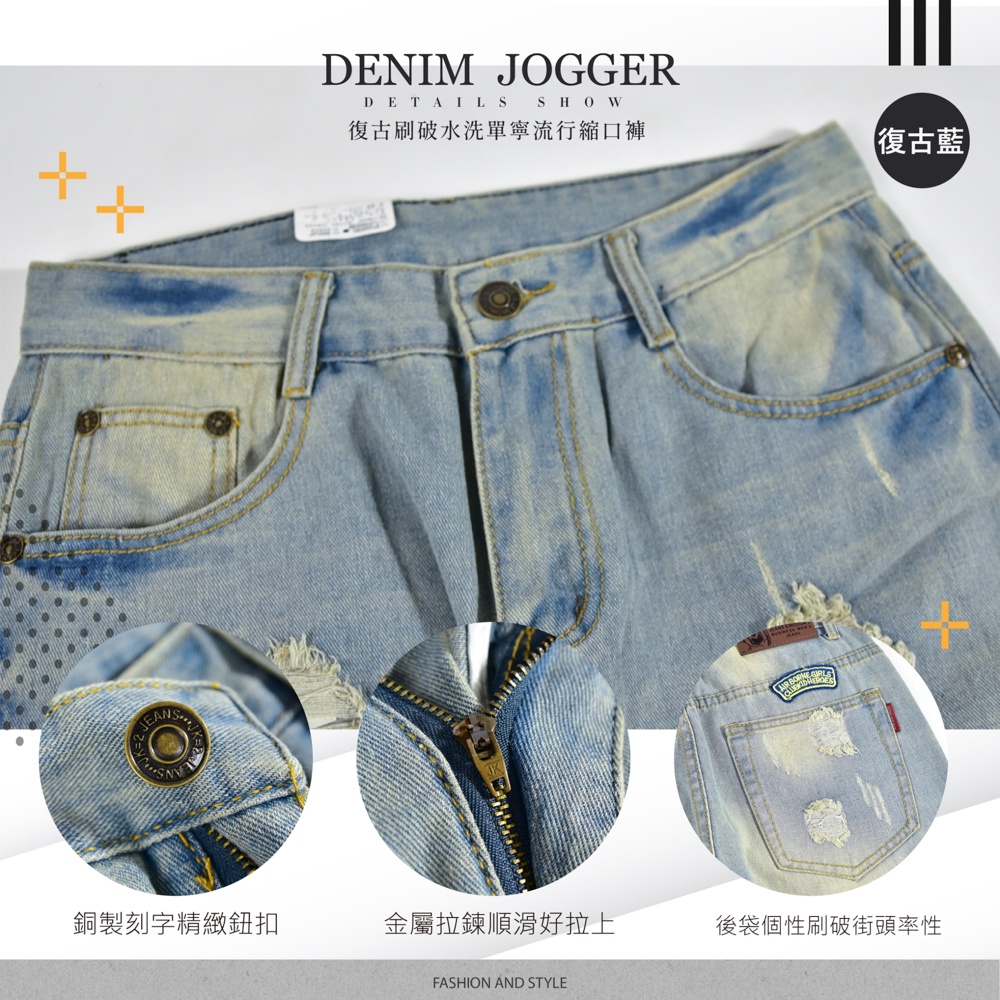 KASO【春夏特賣一件下殺】復古刷色束口牛仔褲 縮口牛仔褲 牛仔縮口褲 牛仔束口褲 彈性牛仔長褲 2587