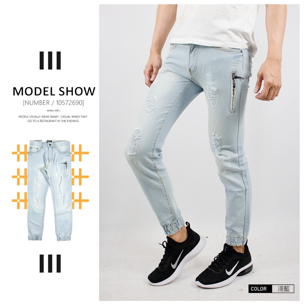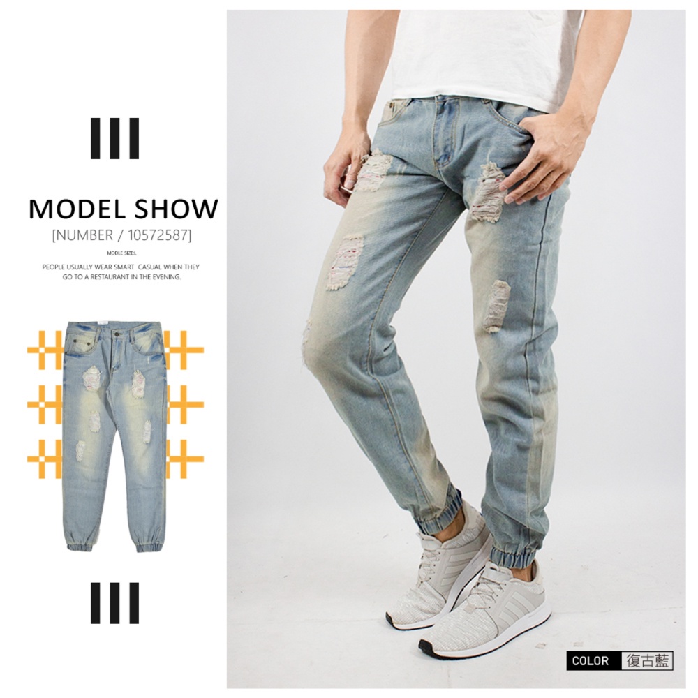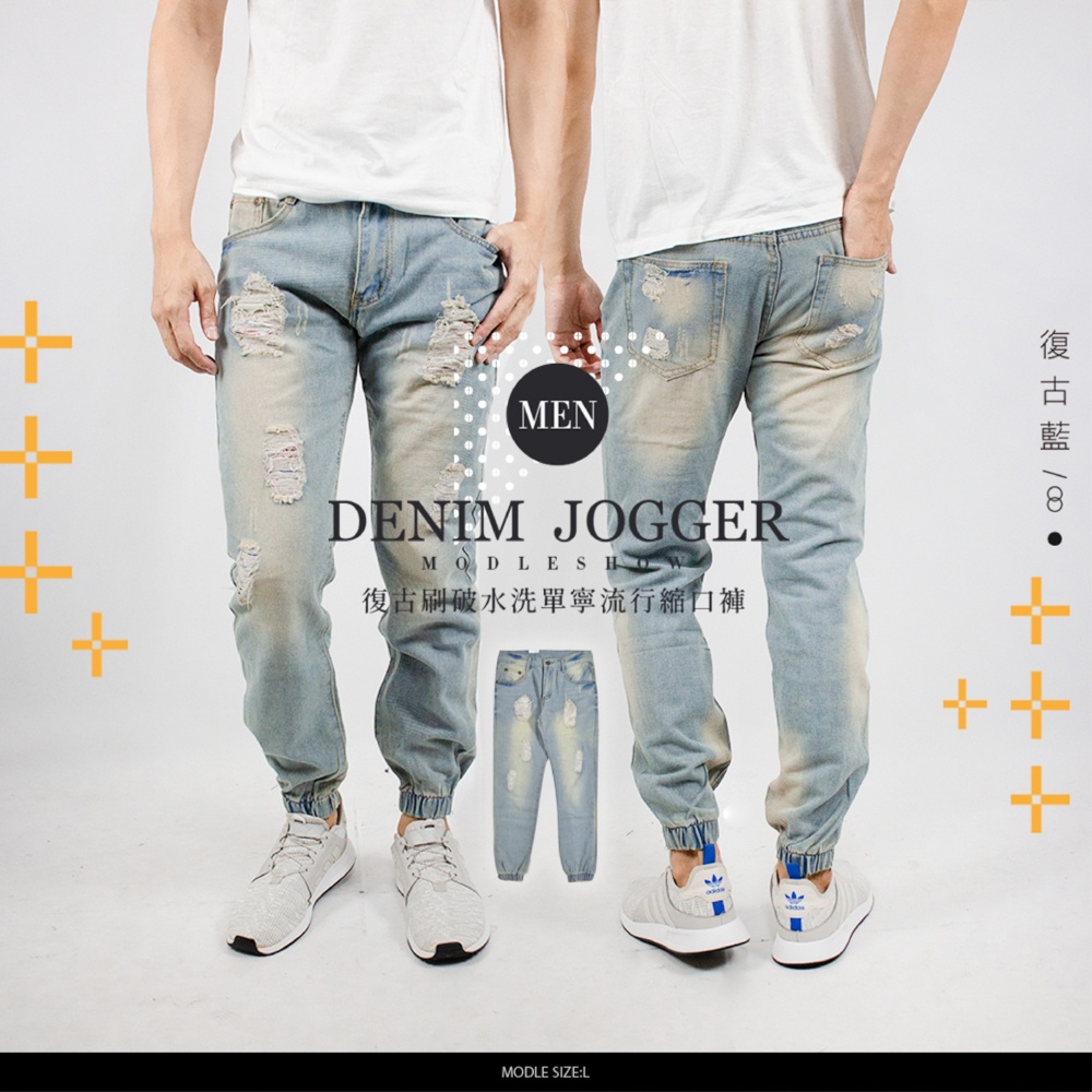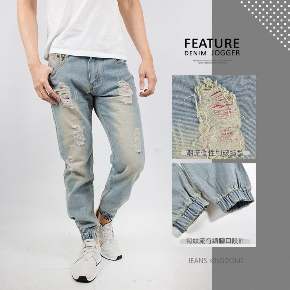 KASO【春夏特賣一件下殺】復古刷色束口牛仔褲 縮口牛仔褲 牛仔縮口褲 牛仔束口褲 彈性牛仔長褲 2587