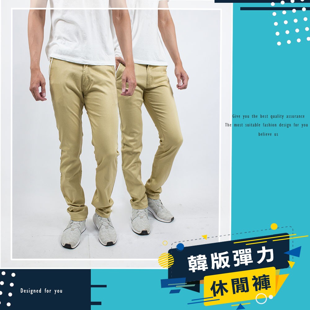 KASO【年終感恩回饋3件999】韓版修身彈力休閒褲 彈性長褲 休閒長褲 小直筒褲 窄管褲 長褲 男 卡其色2298