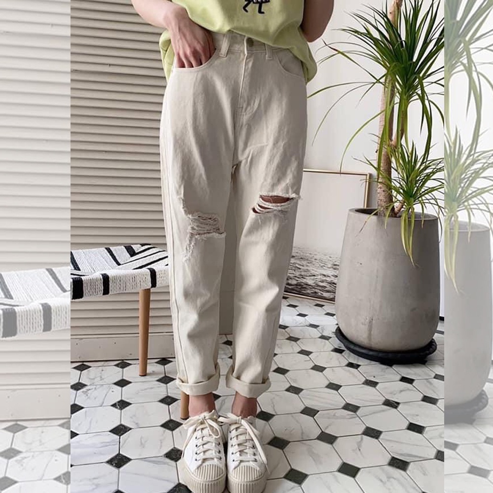 【年終感恩回饋2件1200】正韓 現貨 淺藍雪花割破牛仔褲 刷破男友褲 牛仔長褲 哈倫褲 復古休閒褲女 KASO