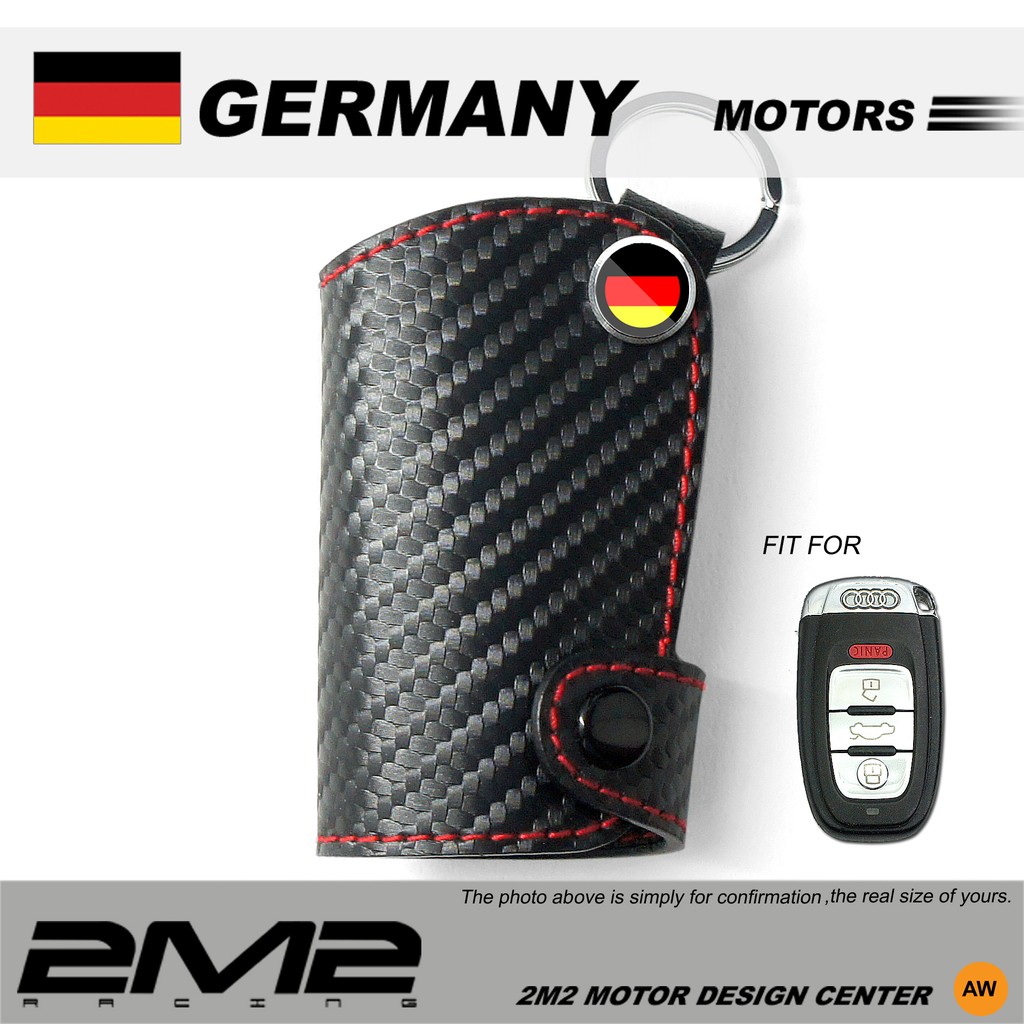 【2M2】Audi A1 A3 A4 S3 S5 R8 quattro 奧迪汽車晶片智能側孔鑰匙皮套 碳纖維