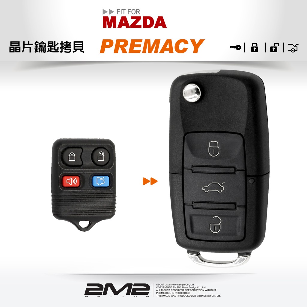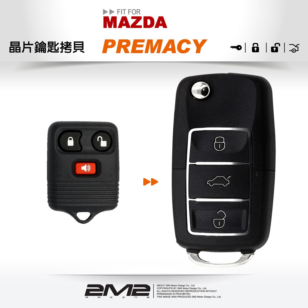 【2M2 晶片鑰匙】MAZDA PREMACY 馬自達汽車晶片鑰匙 快速配製 拷貝鑰匙 新增鑰匙 改裝折疊鑰匙