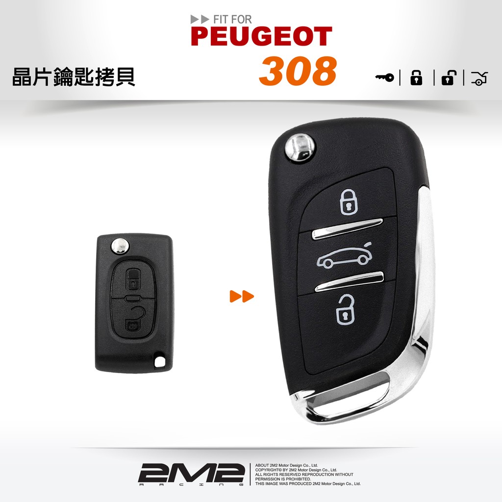 【2M2 晶片鑰匙】寶獅 PEUGEOT 308 新增摺疊遙控鑰匙 複製晶片摺疊鑰匙 鑰匙遺失要新增