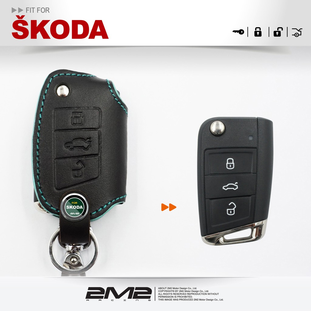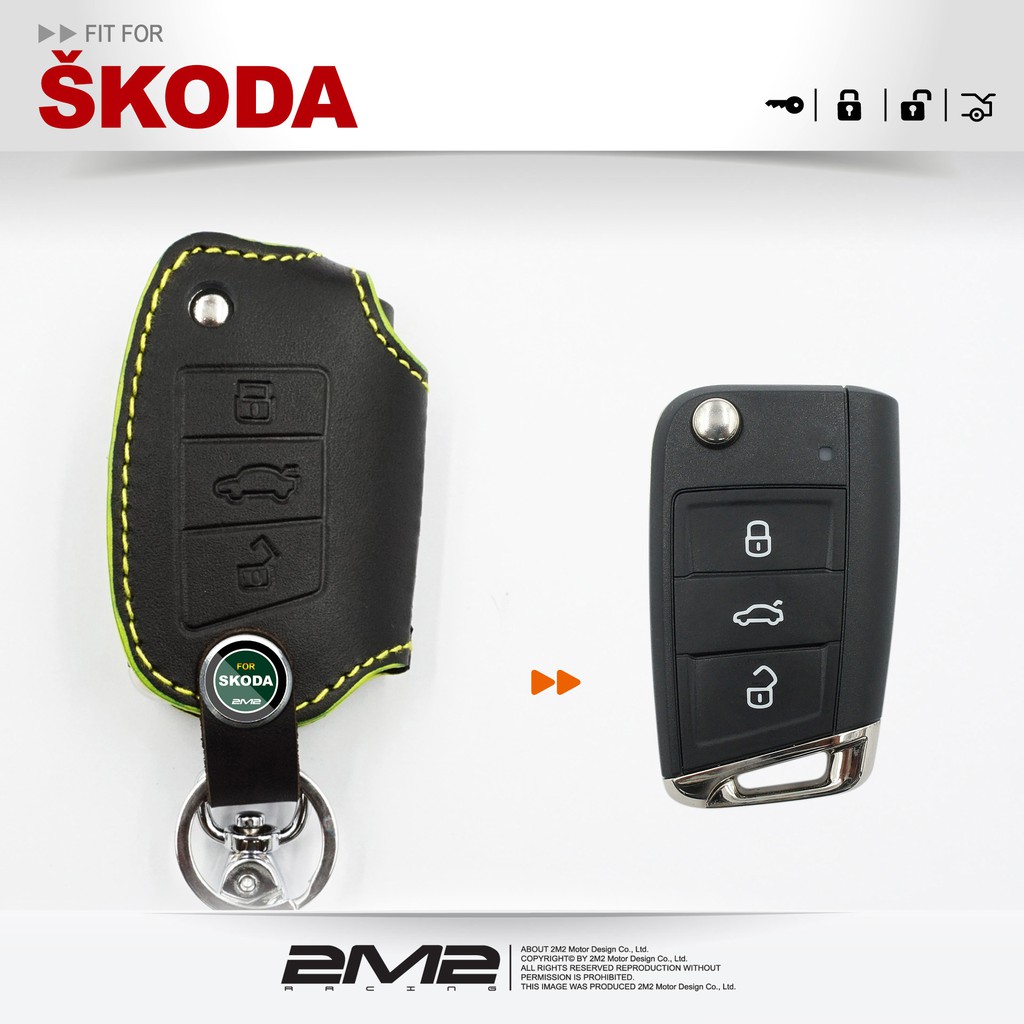 【2M2】SKODA Octavia Fabia Yeti Rapid 斯柯達 摺疊 感應鑰匙 鑰匙皮套 車縫款 皮套
