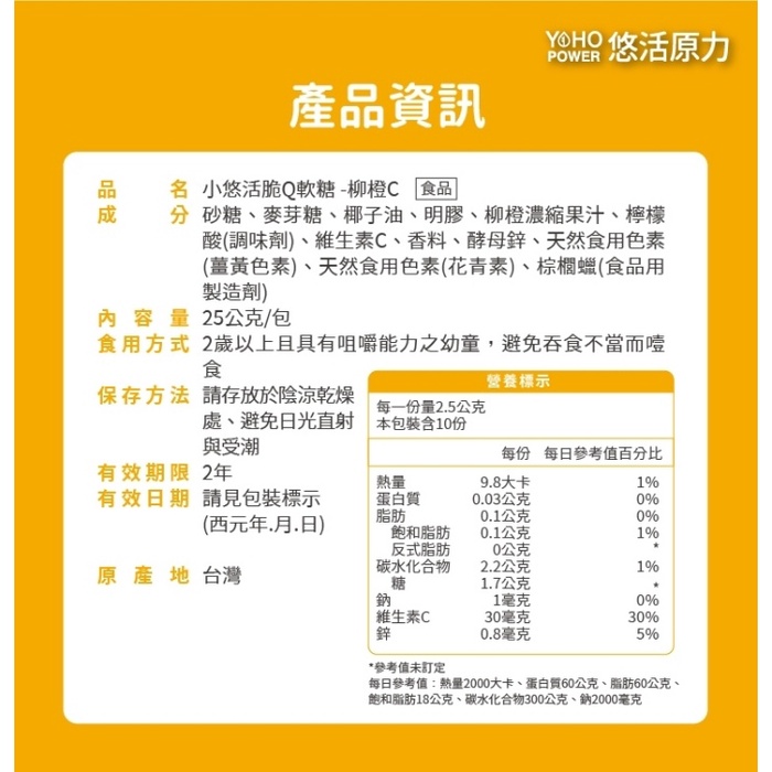 YohoPower 悠活原力 小悠活 益生菌/柳橙C 脆Q軟糖 25g【新高橋藥局】2款供選 機能軟糖