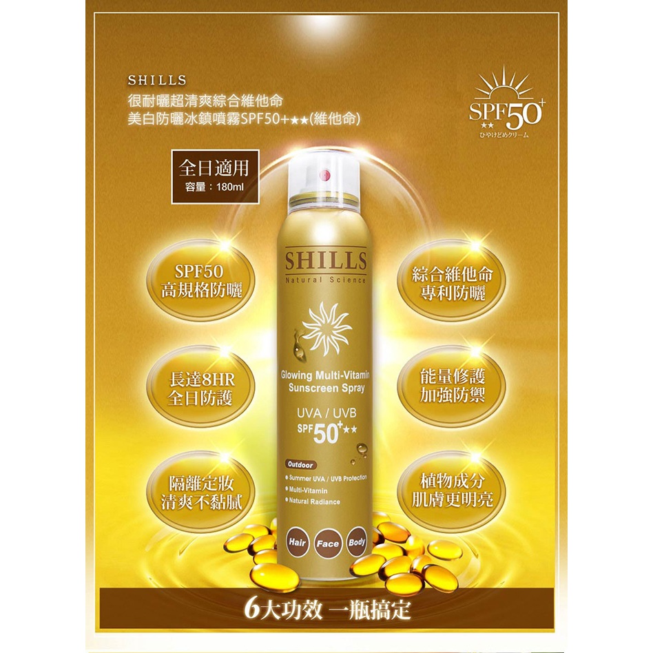 Shills 舒兒絲 很耐曬 防曬冰鎮噴霧 180ml/90g【新高橋藥局】多款供選