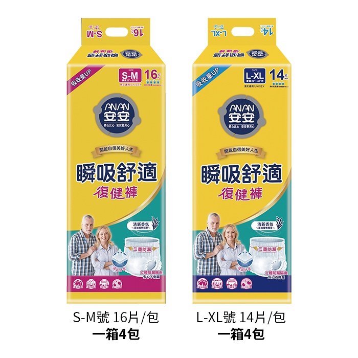 安安 瞬吸舒適復健褲 S-M/L-XL (箱購)【新高橋藥局】成人紙尿褲