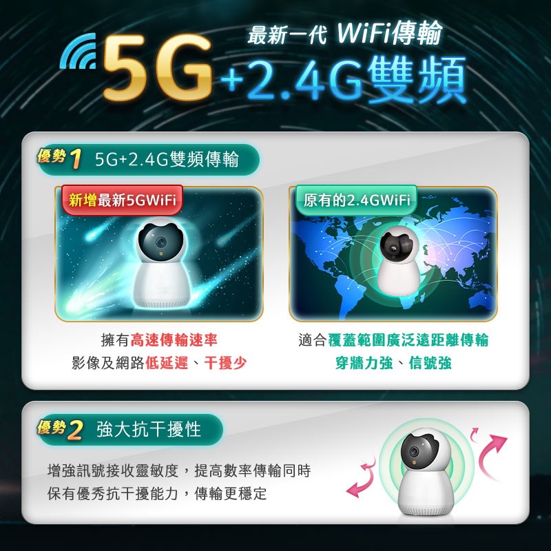 鴻嘉源 500萬高清廣角雙頻監視器 最頂規格的室內監視器 支援5G網路 支援512G 夜間全彩 監視器 WIFI監控